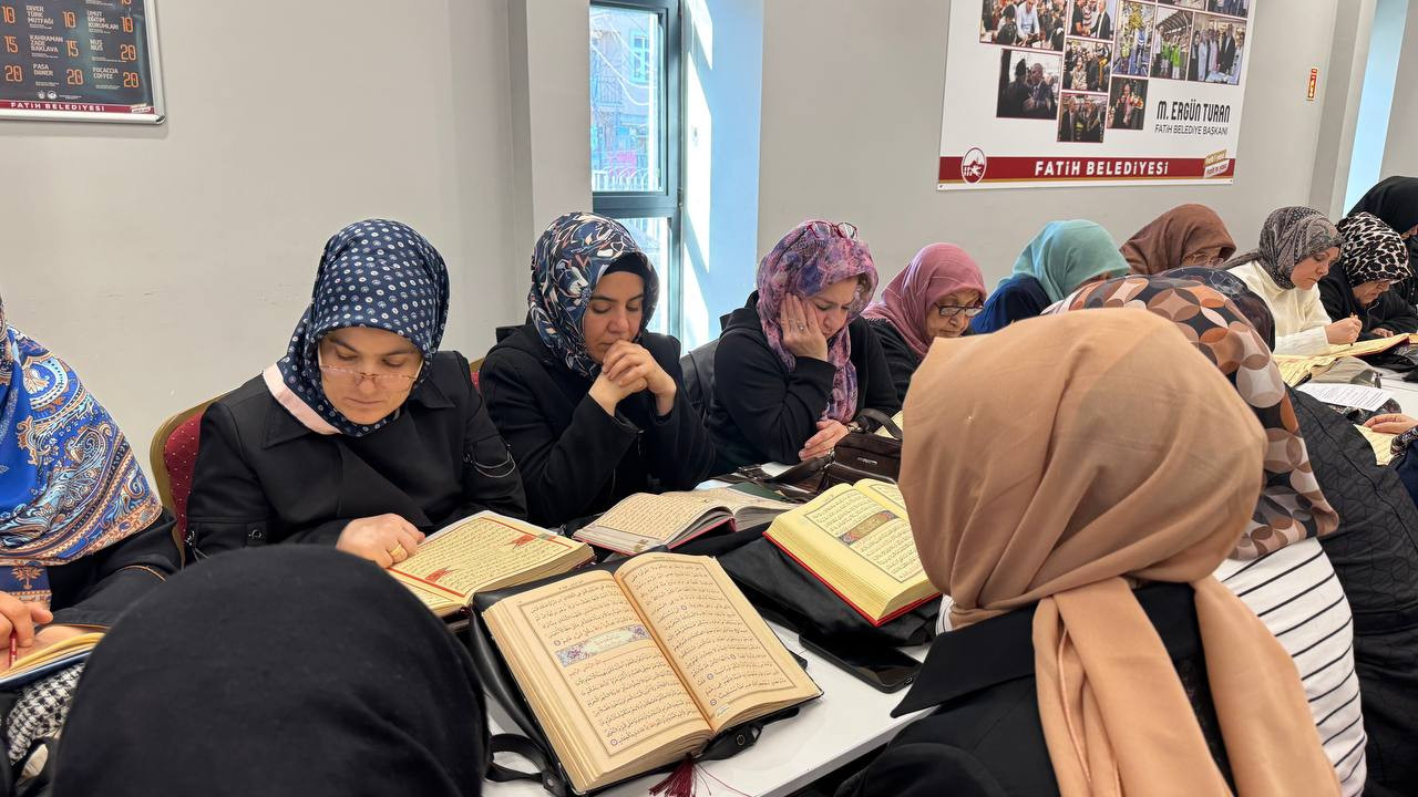 Fatih Belediyesi’nin Ramazan mukâbele programları devam ediyor. Hacı Evhaddin, Küçükmustafapaşa ve Mevlanakapı Çok Amaçlı Salonlarında düzenlenen, Halkla İlişkiler Ofisimizin katkılarıyla yürütülen programlarda vatandaşlarımız Ramazan’ın manevi ikliminde hep birlikte hatim takip ediyor.