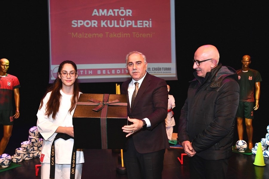 Programda sporcu gençlerin tezahüratlarıyla kürsüye gelen Fatih Belediye Başkanı M. Ergün Turan, amatör kulüplerin önemine vurgu yaparak “Amatör spor kulüpleri, sağlıklı bir beyin ile vücuda sahip olmamızda ve doğru arkadaşlıklar kurmamıza olanak sağlayan hayatımızın en önemli yerlerinden biridir. Ben de göreve başladığım günden itibaren Fatih’te gençler için yapılabilecek en kıymetli işin spor faaliyetleri olduğu kanaatindeyim. Tabii ki aile, inançlarımız ve değerlerimiz önemli mefhumlardır ancak gençlerimizi kötü alışkanlıklardan korumamızı sağlayacak yegâne değer gençlerimizin spora yönlendirilmesidir. Ama spor sadece futboldan ibaret değildir. Fatihimizin geçmişte olduğu gibi önümüzdeki yıllarda da Türkiye’ye çok önemli sporcular kazandıracağına inanıyorum.” dedi.