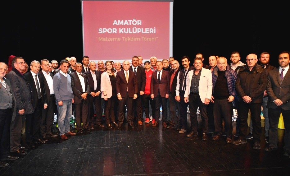 Törende, 53 amatör spor kulübüne eşofman takımı, antrenman yeleği, futbol maç topu, basketbol topu, voleybol maç topu, izci forması, boks eldiveni ve engelli basketbol topu gibi binlerce malzeme dağıtıldı.