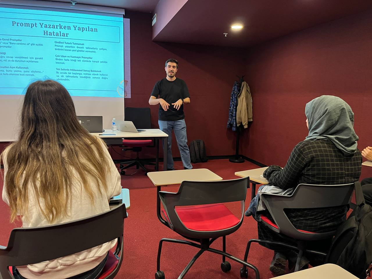 Yapay zekânın akademik çalışmalardan günlük yaşam alışkanlıklarına, iş dünyasından kültürel üretime kadar pek çok alanda kullanılmaya başlandığını hatırlatan eğitmenler doğru prompt kullanımının gelecekte kritik bir beceri olacağının altını çizdi. Bu çerçevede düzenlenen atölye katılımcıların yalnızca teknolojiyle tanışmasını değil, aynı zamanda bilinçli ve eleştirel bir bakış açısı geliştirmesini de hedefledi.