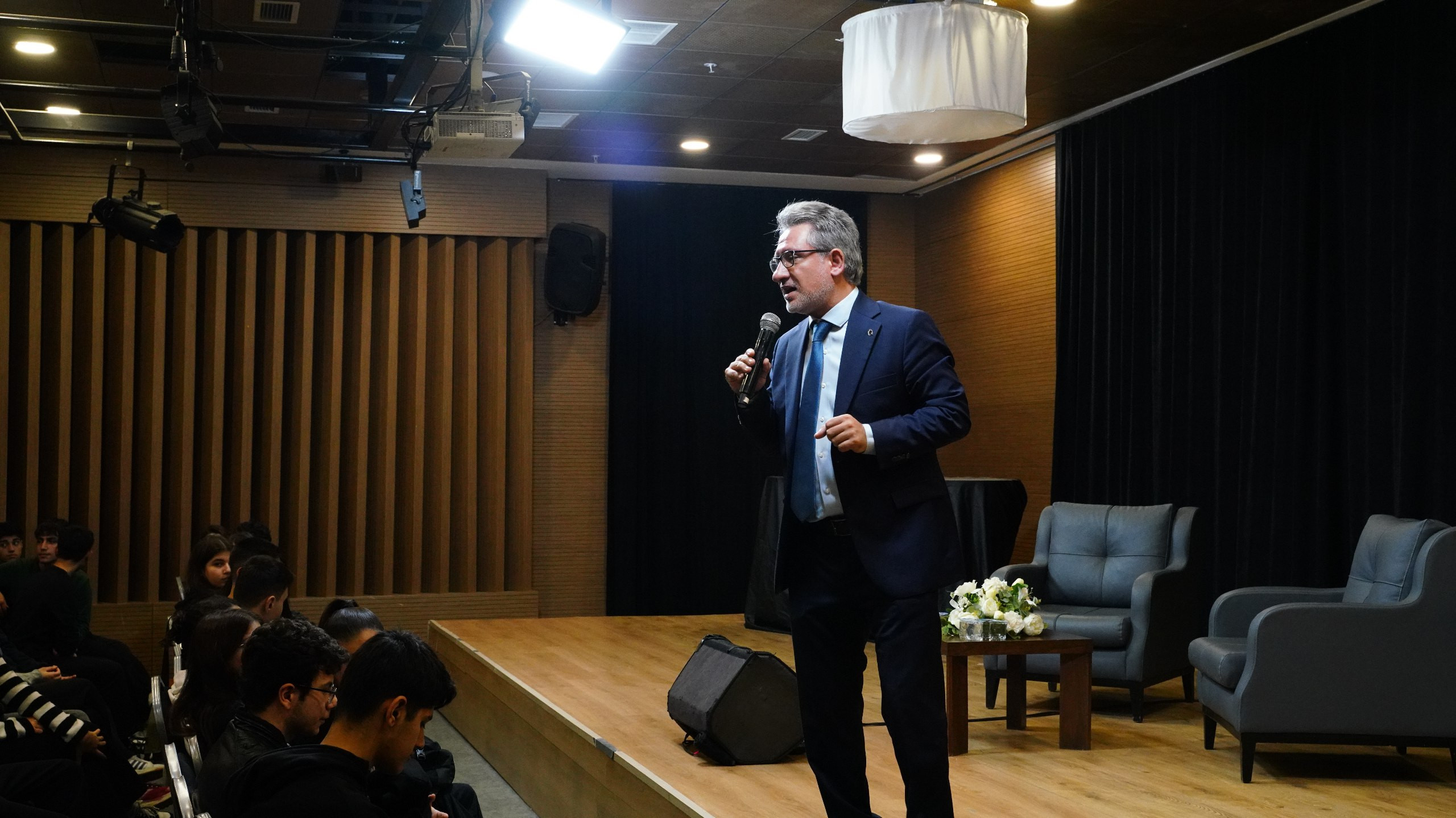 Katılımcıların yoğun ilgisiyle gerçekleşen programda Aydın, sanatın ilahi kaynağı, bilimin sınırları ve estetiğin insan ruhundaki karşılığı üzerine çarpıcı değerlendirmelerde bulundu. Bilimsel birikimiyle sanatın sezgisel derinliğini bir araya getiren konuşmasında, “Sanat, insanın iç âlemindeki hakikati görünür kılma çabasıdır,” ifadesiyle dikkat çekti.