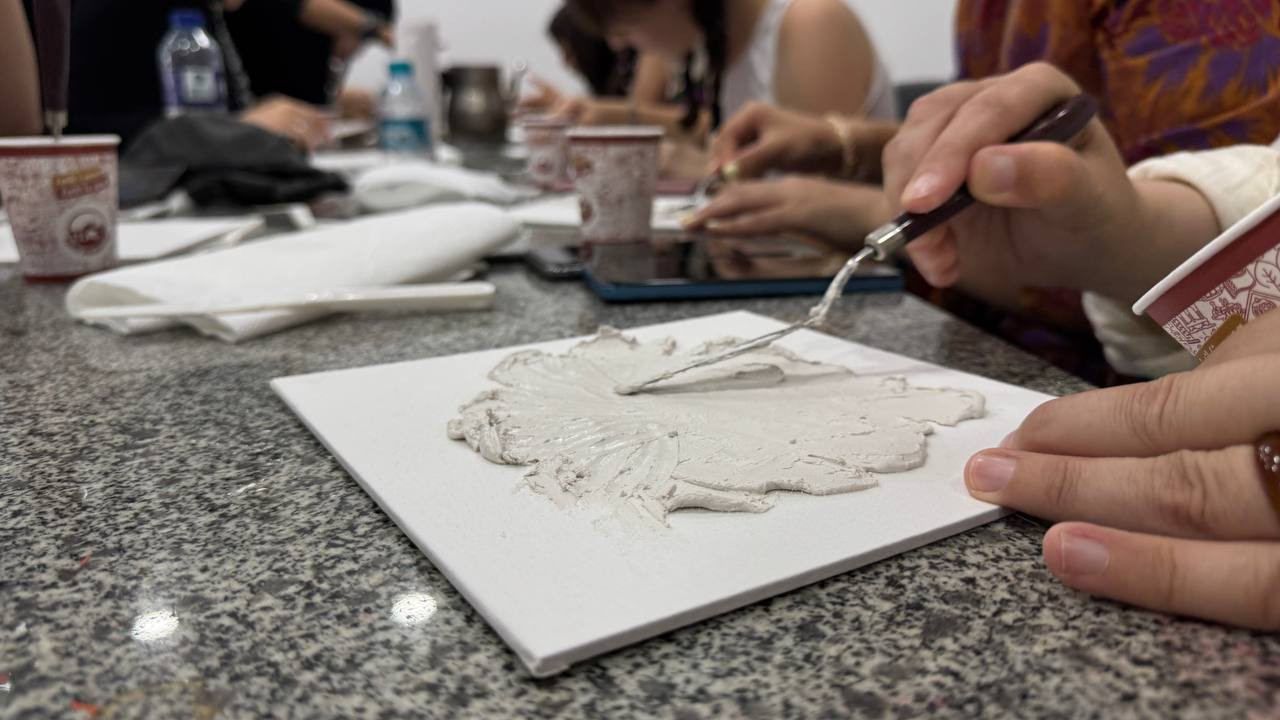 Ressam eğitmen eşliğinde yürütülen atölyede katılımcılar geleneksel tuval anlayışının ötesine geçerek yüzeylerde doku oluşturma tekniklerini öğrendi. Kum, kağıt, ip, doğal materyaller ve farklı zeminlerle gerçekleştirilen uygulamalar sayesinde katılımcılar kendi iç dünyalarını somut malzemelerle ifade etme pratiği kazandı. Sanat tarihinin klasik yorumlarından sıyrılarak çağdaş sanatın deneysel alanlarına temas eden bu atölye yaratıcılığı teşvik eden yapısıyla dikkat çekti.