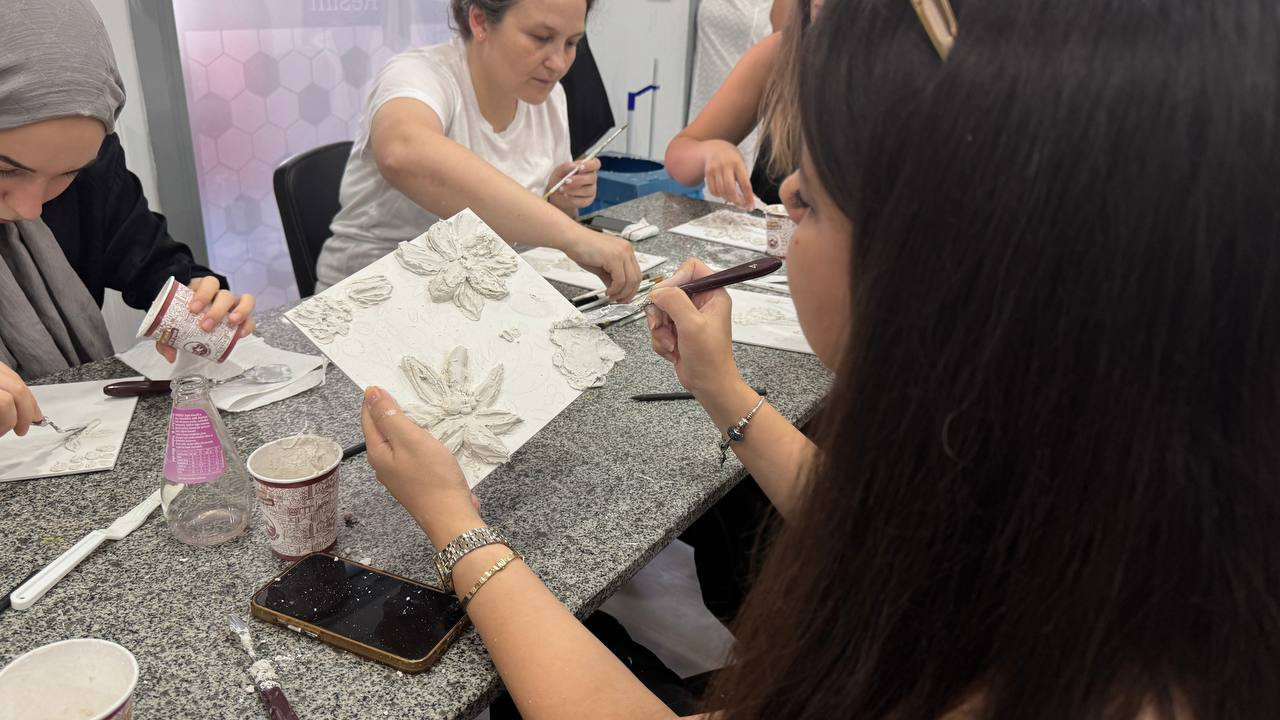 Atölye sürecinde yalnızca teknik bilgi verilmedi; aynı zamanda estetik bakış açısı, renk ve kompozisyon ilişkisi, figüratif ve soyut anlatım biçimleri gibi konular da uygulamalı olarak aktarıldı. Her katılımcının kişisel bir biçim dili geliştirmesi teşvik edildi. Yoğun dikkat ve özen gerektiren bu çalışmalarda hataların da sürecin doğal bir parçası olduğu vurgulandı; böylece sanatsal üretim yalnızca bir sonuç değil, bir deneyim olarak da ele alındı.