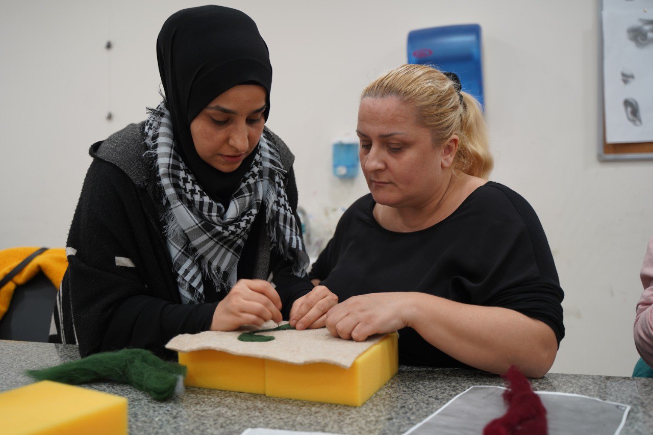 Fatih Sulukule Sanat Akademisi’nin düzenlediği Keçe Sanatı Atölyesi'nde katılımcılar keçeden kendi eserlerini üretiyorlar.