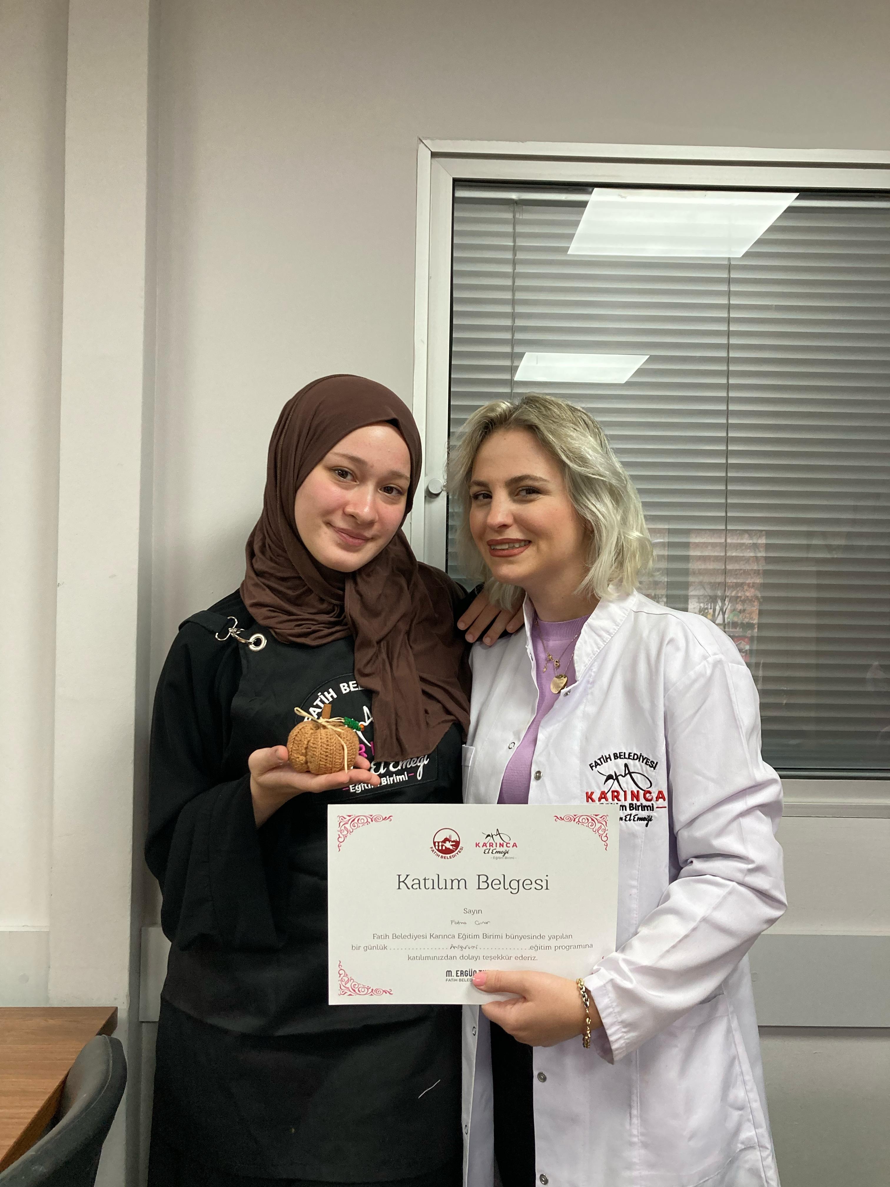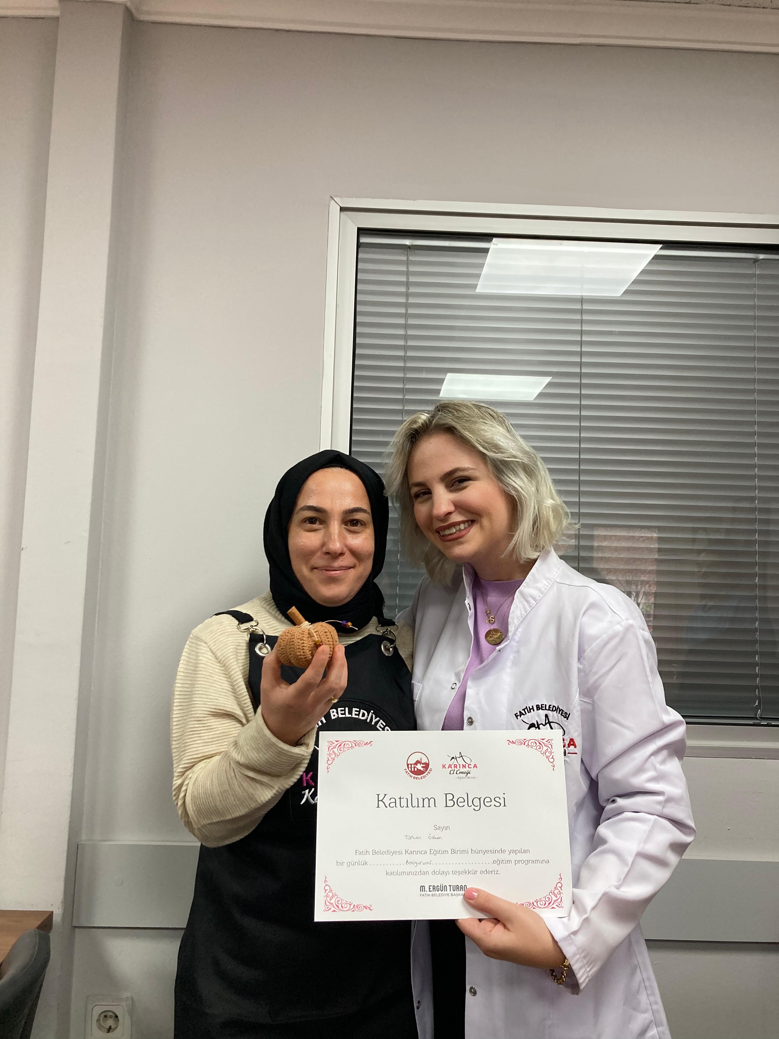 Karınca Eğitim Birimleri'nde düzenlenen Amigurumi Atölyesi katılımcılara tığ veya şiş kullanarak ördükleri sevimli oyuncakları elyaf dolgu ile doldurma şansı sunuyor. Ancak sadece oyuncaklarla sınırlı kalmayıp, aynı zamanda atölyede katılımcılar kaktüs şeklindeki şık anahtarlıkları veya bal kabağı temalı dekoratif amigurumileri yapma imkanı da buluyorlar. Bu süreçte her bir katılımcı derslere büyük bir ilgiyle katılıyor, ustalıklarını geliştiriyor ve kendi el emekleriyle eserler ortaya çıkarıyorlar. Karşılıklı yardımlaşma ve öğrenme atmosferi, herkesin yaratıcılığını serbest bırakabileceği bir ortam oluşturuyor.