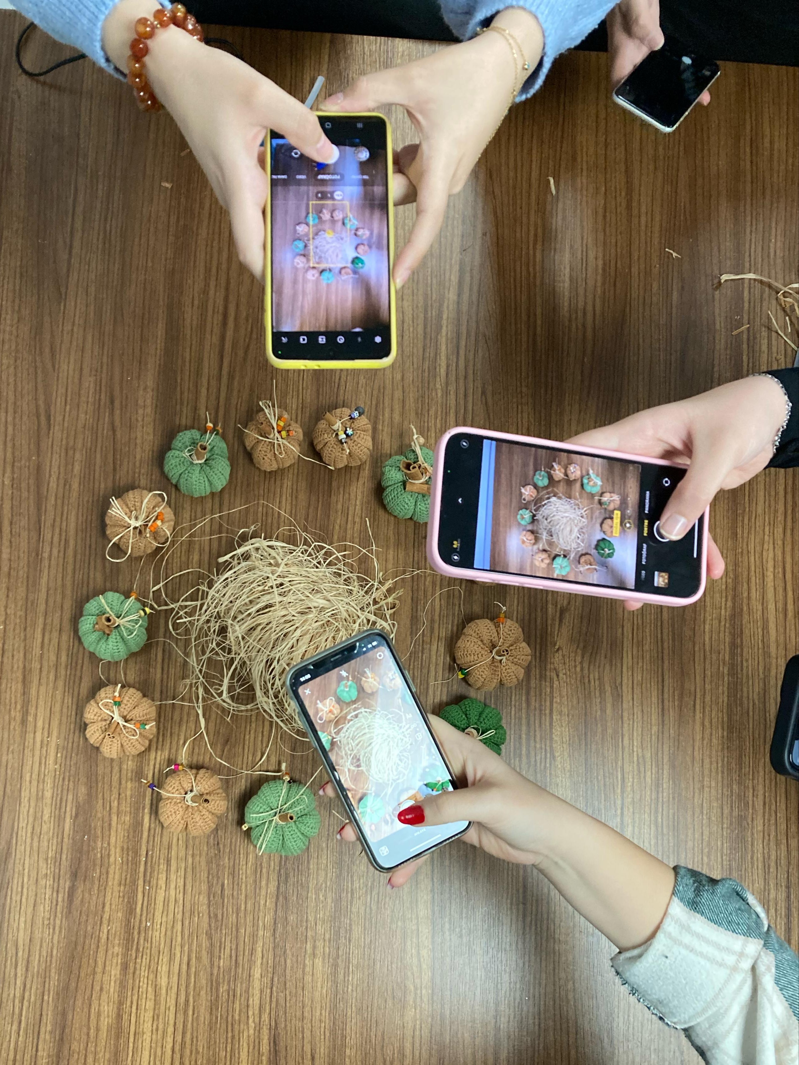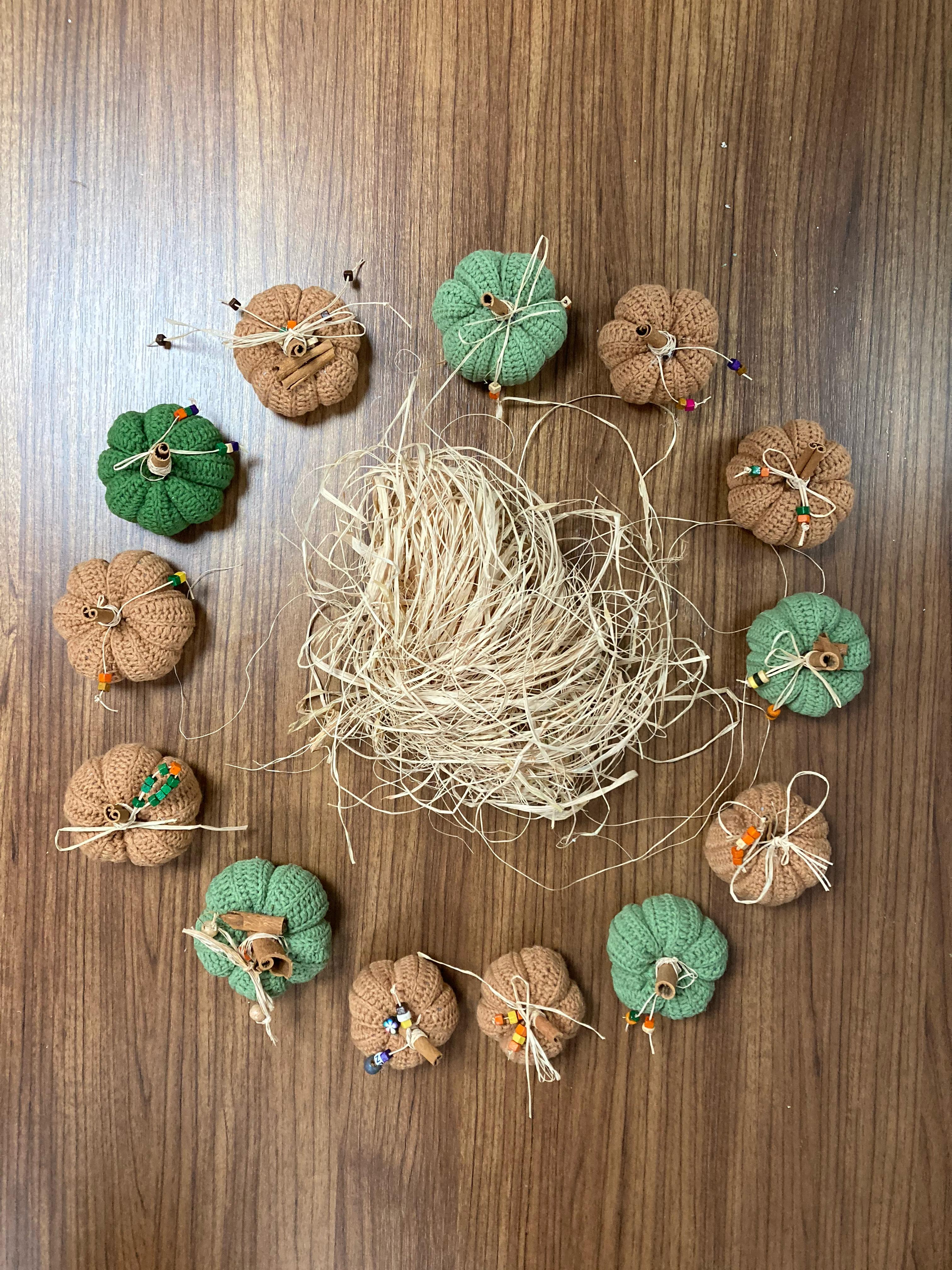 Karınca Eğitim Birimleri tarafından düzenlenen Amigurumi Atölyesi'nde katılımcılar kendi el emekleriyle bal kabağı temalı dekoratif amigurumi ve benzeri çalışmalar yapıyorlar.