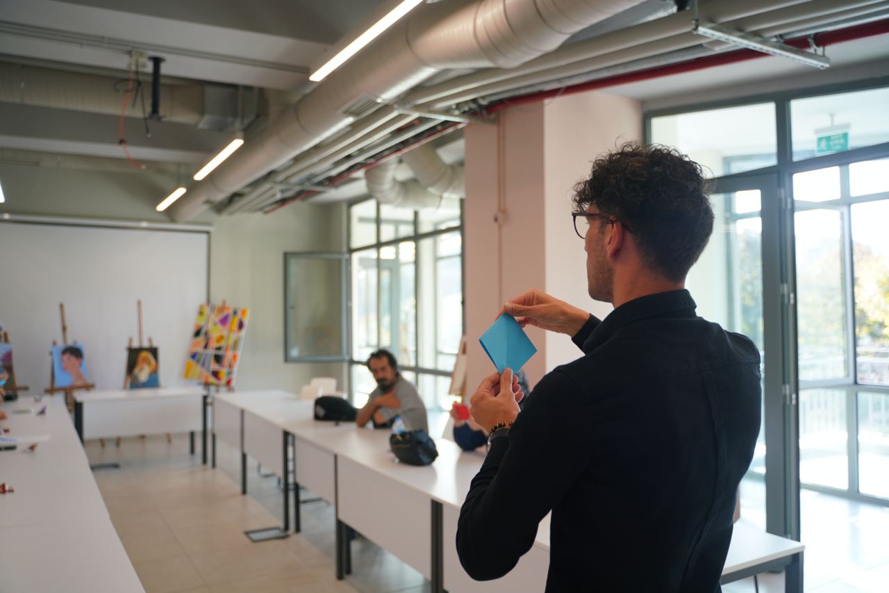 Fındıkzade Karınca Eğitim Birimleri'nde düzenlenen Origami Atölyesi, profesyonel kağıt sanatçısı rehberliğinde gerçekleştiriliyor. İlk olarak katılımcılara origami sanatının tanımı yapılıyor ve bu sanatla ilgili profesyonel örnekler sergileniyor. Atölye sürecinde, katılımcılar tarafından toplamda üç adet origami çalışması yapılıyor. Katılımcılar, atölyeyi büyük bir ilgiyle takip ediyorlar.