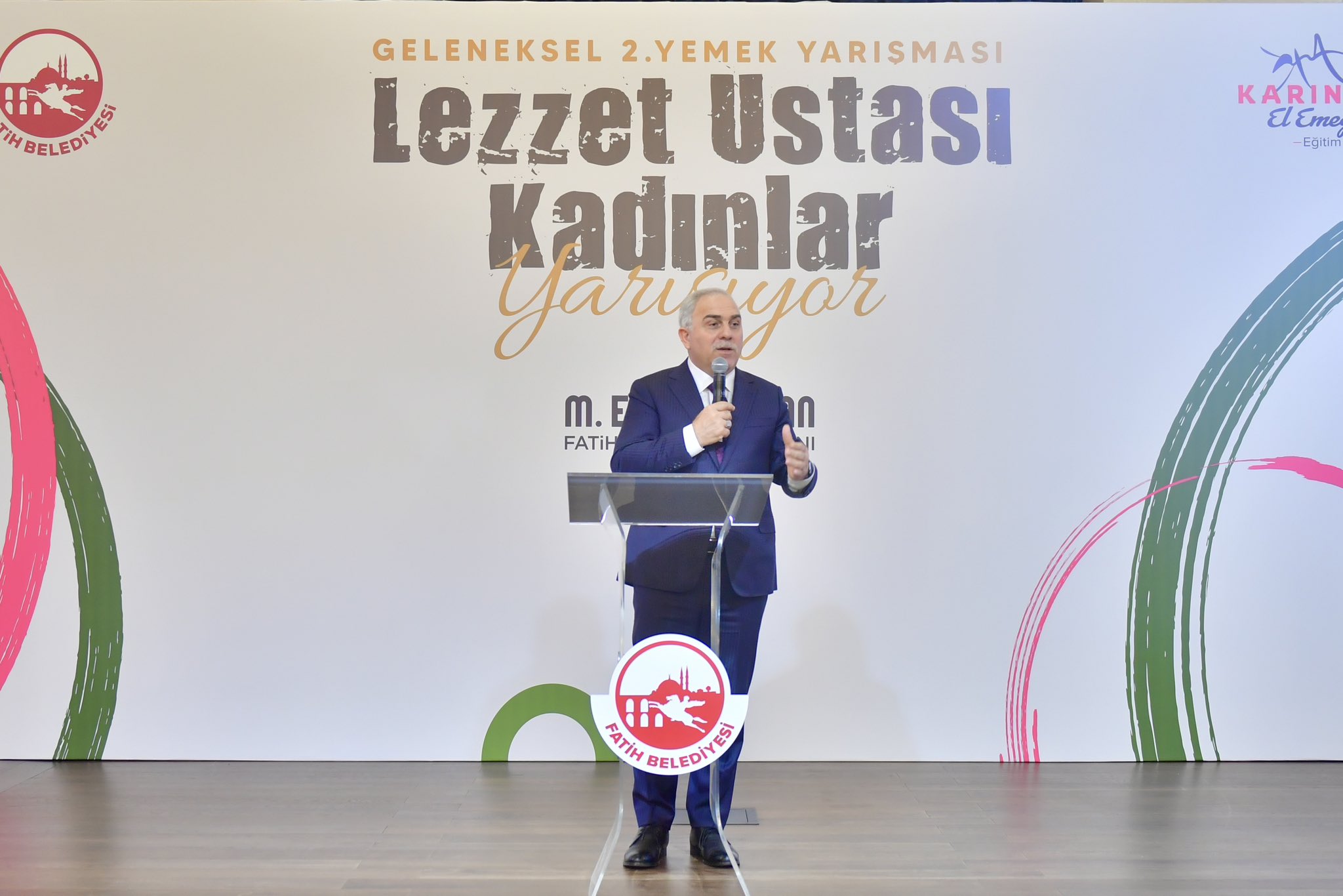 Fatihli kadınlar için düzenlenen "Lezzet Ustası Kadınlar Yarışıyor" adlı Geleneksel 2. Yemek Yarışması Fatih Belediye Başkanı M. Ergün Turan'ın katılımıyla Neslişah Sultan Kültür Merkezi'nde gerçekleştirildi. Başkan Turan, mutfak kültürünün yaşatılması amacıyla düzenlenen bu yılki yemek yarışmasında lezzet dolu bir şölen yaşandığını belirterek tüm katılımcıları tebrik etti. Ayrıca mutfak becerilerini geliştirmek isteyen herkesin GastroSanat'ta yer bulabileceğini vurguladı. Yarışma zeytinyağlılar ve hikayesi olan yemekler olmak üzere iki kategoride düzenlendi. Her iki kategoride de ilk üçe giren yarışmacılara ödülleri takdim edildi. Yarışmanın jürisinde 4 sektör temsilcisi ve 1 belediye yetkilisi bulunurken yemeklerin sunumunu Elif Korkmazel gerçekleştirdi. KARINCA El Emeği Eğitim Birimi tarafından düzenlenen program, ödül töreni ve kokteyl ile sona erdi ve katılımcılar yarışmayı ilgiyle takip etti.