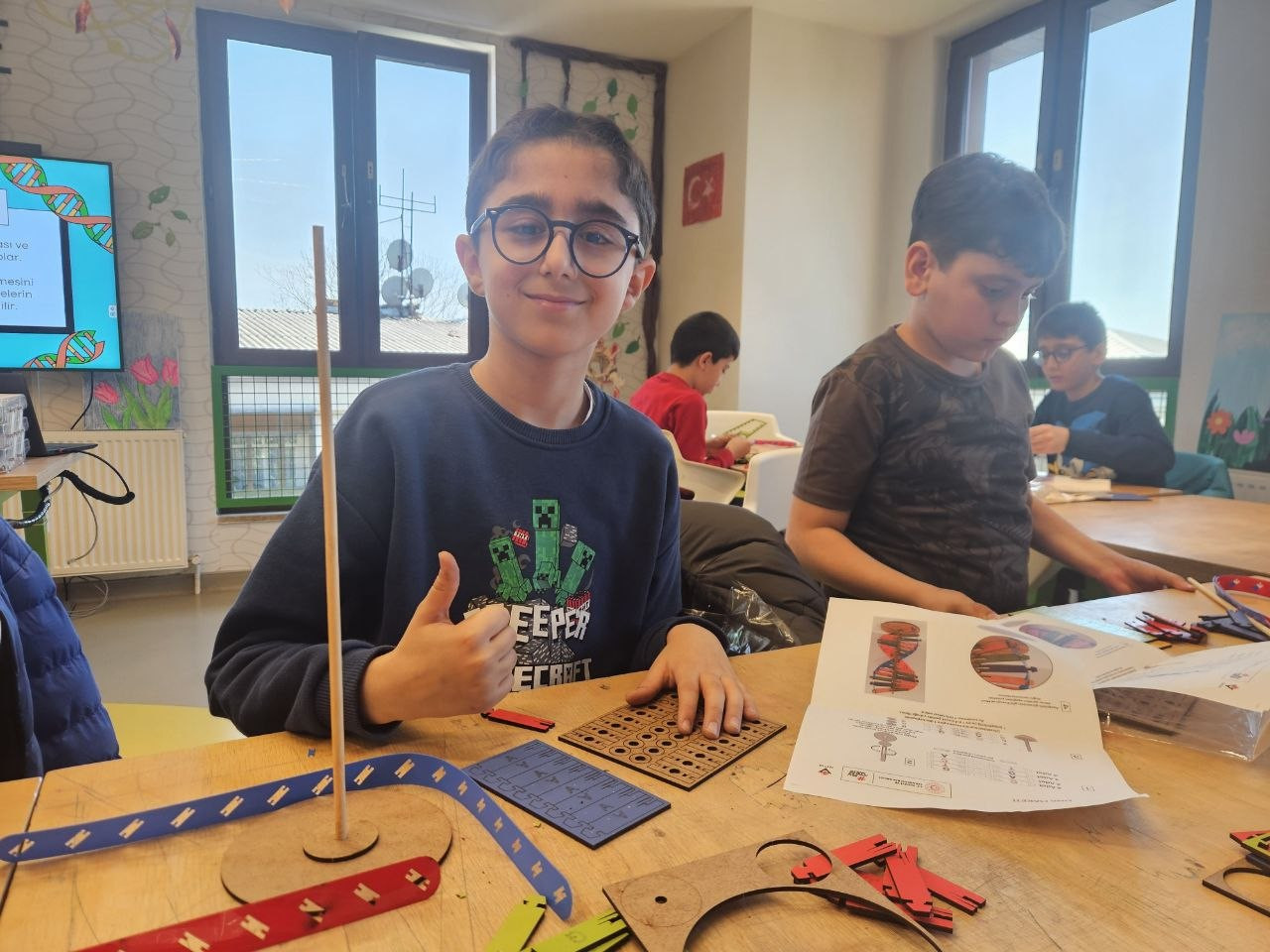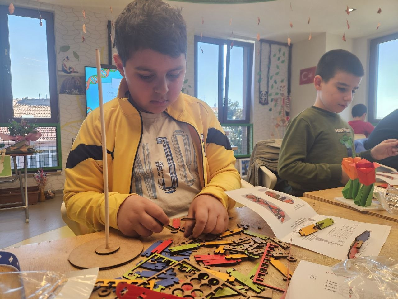 Uygulama sürecinde dikkat, el-göz koordinasyonu ve problem çözme becerileri birlikte gelişirken; üretim odaklı bu yaklaşım öğrenmenin kalıcılığını artıran bir unsur olarak öne çıktı. Öğrencilerin kendi modellerini tamamlaması, bireysel öğrenme sürecini desteklerken aynı zamanda özgüven gelişimine de katkı sundu. Her bir öğrencinin ortaya koyduğu çalışma, öğrenilen bilginin kişisel bir üretime dönüşmesini sağladı.