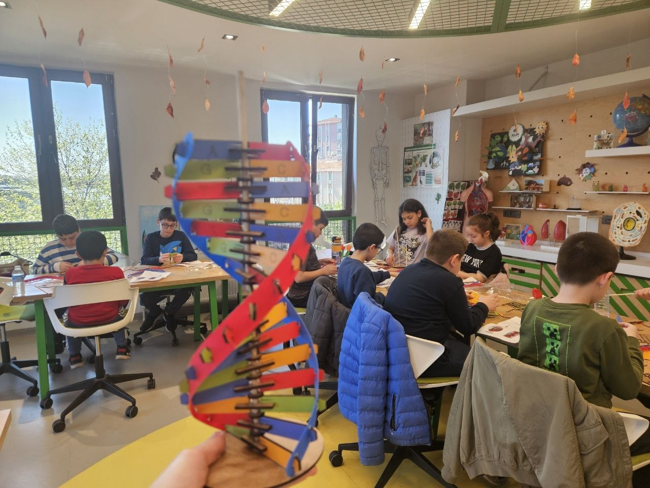 Bilim Fatih kapsamında düzenlenen “DNA Modelimi Oluşturuyorum” çalışmasında öğrencilerimiz, öğrendikleri genetik bilgileri uygulayarak DNA’nın çift sarmal modelini oluşturdu.