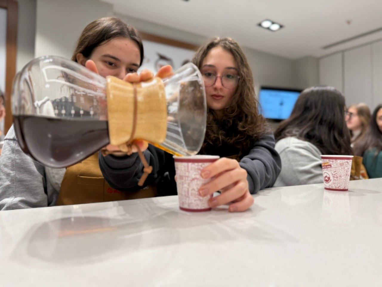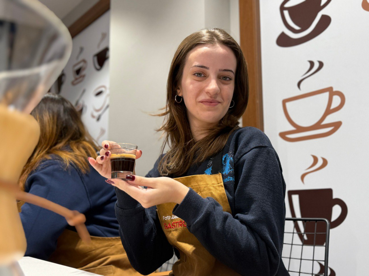 Ayrıca kahve çekirdeklerinin öğütme ayarları ve bu ayarların farklı demleme yöntemleriyle uyumu üzerine bilgiler verildi. French press, filtre kahve ve espresso gibi yaygın demleme yöntemleri tanıtılarak her yönteme uygun öğütme inceliklerinin önemine dikkat çekildi. Bu bilgiler öğrencilere kahve hazırlarken daha bilinçli seçimler yapabilme yetisi kazandırmayı hedefliyor.