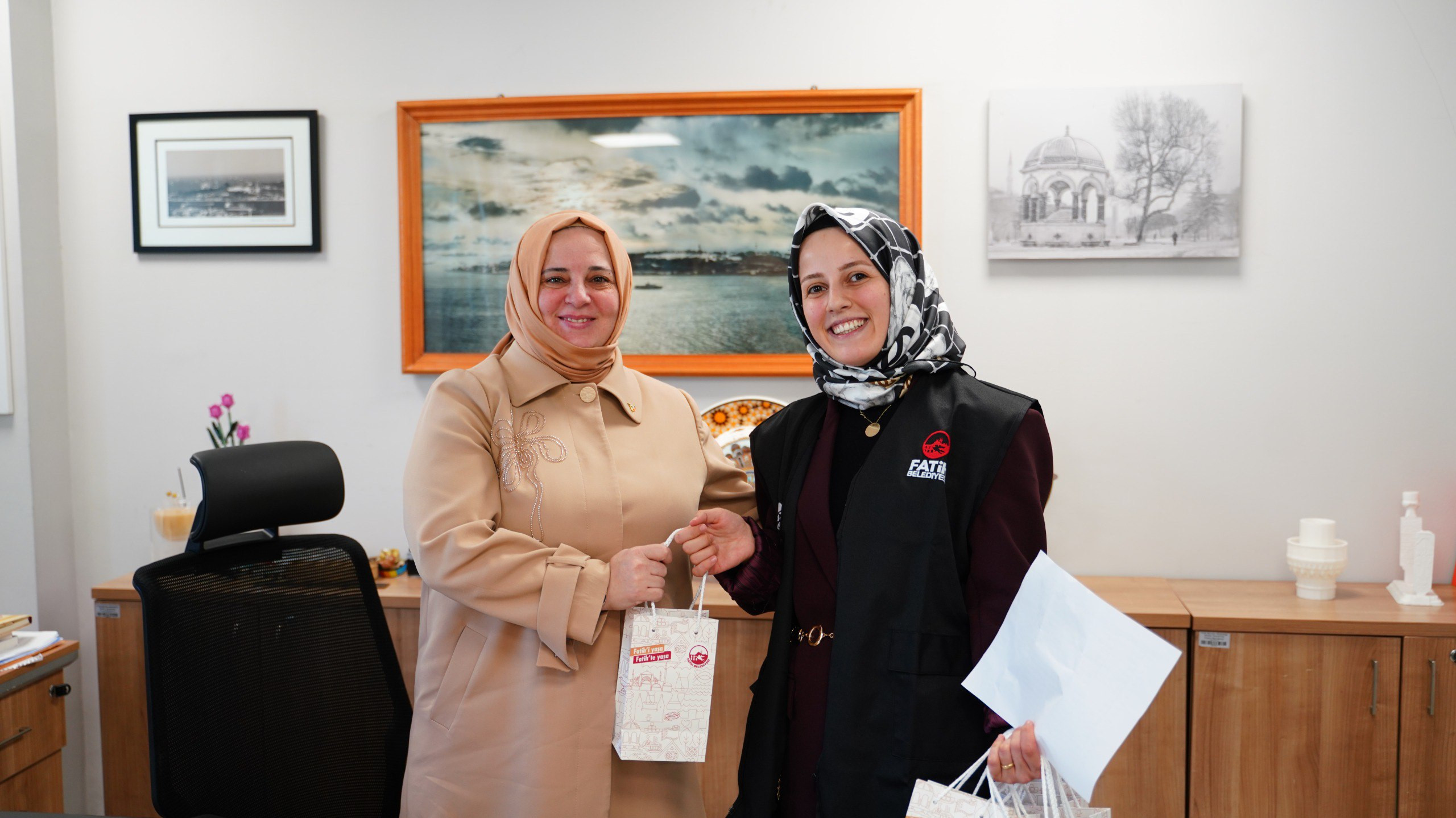 Fatih Belediyesi Halkla İlişkiler Ofisi tarafından gerçekleştirilen ziyaretlerde belediyemizin farklı birimlerinde görev yapan kadın mesai arkadaşlarımızla bir araya gelinerek günün anlam ve önemine dair sohbetler gerçekleştirildi. Günün hatırası olarak hazırlanan hediyeler mesai arkadaşlarımıza takdim edildi. Takı kutusu, Türk kahvesi ve şeker çikolatadan oluşan hediye setleriyle kadın çalışanlarımızın 8 Mart Dünya Kadınlar Günü kutlandı.