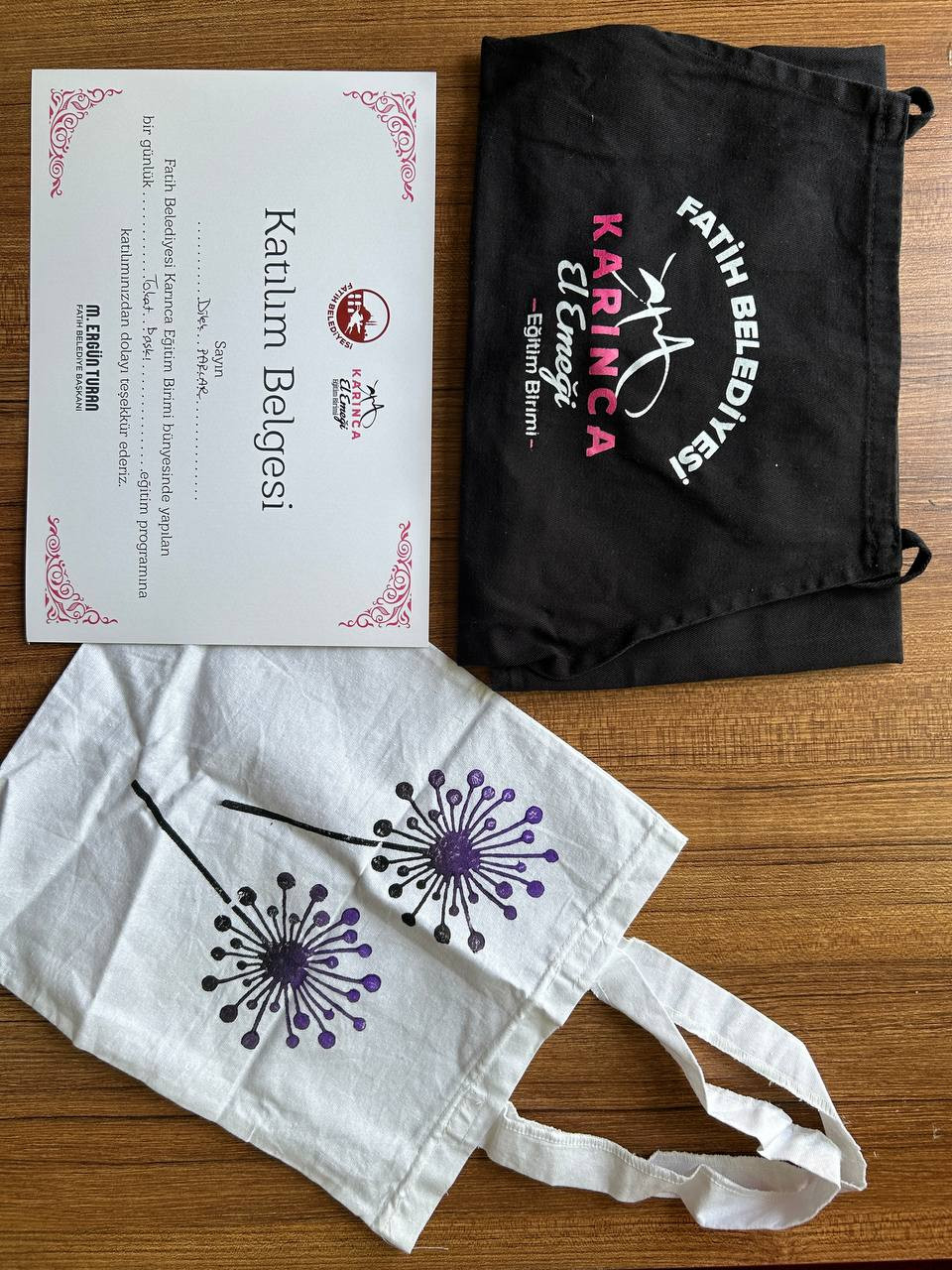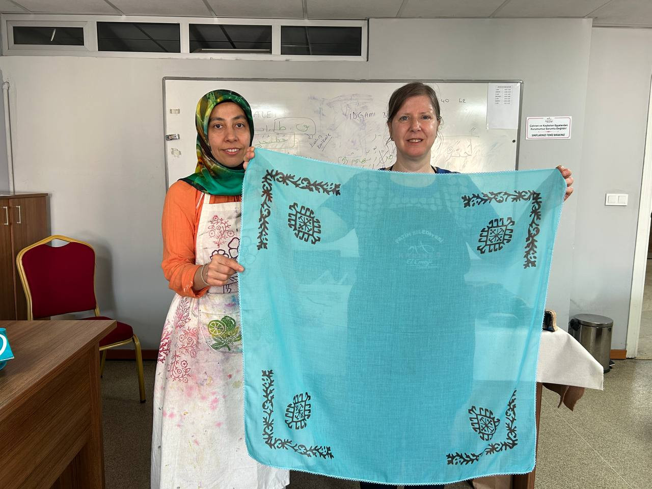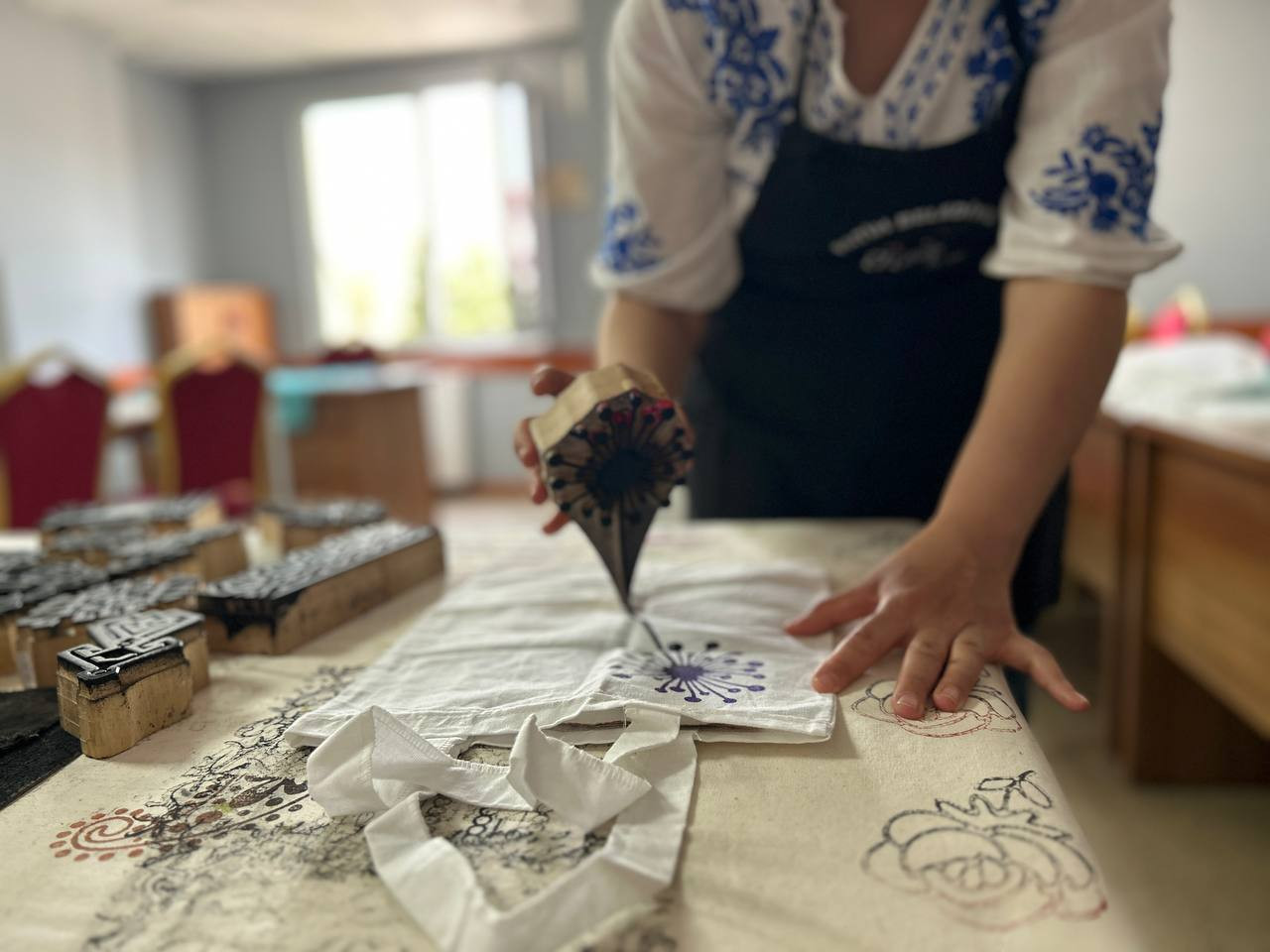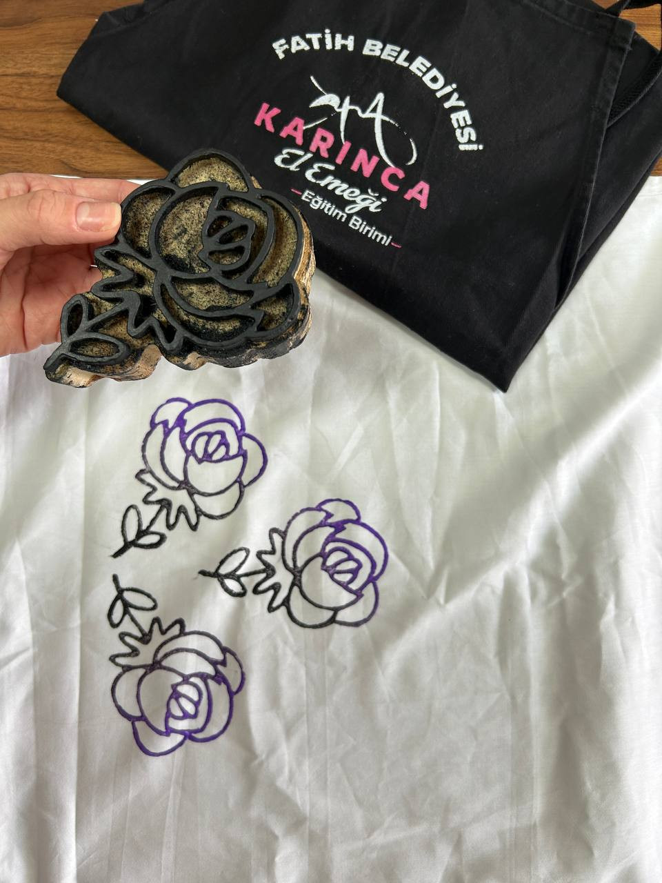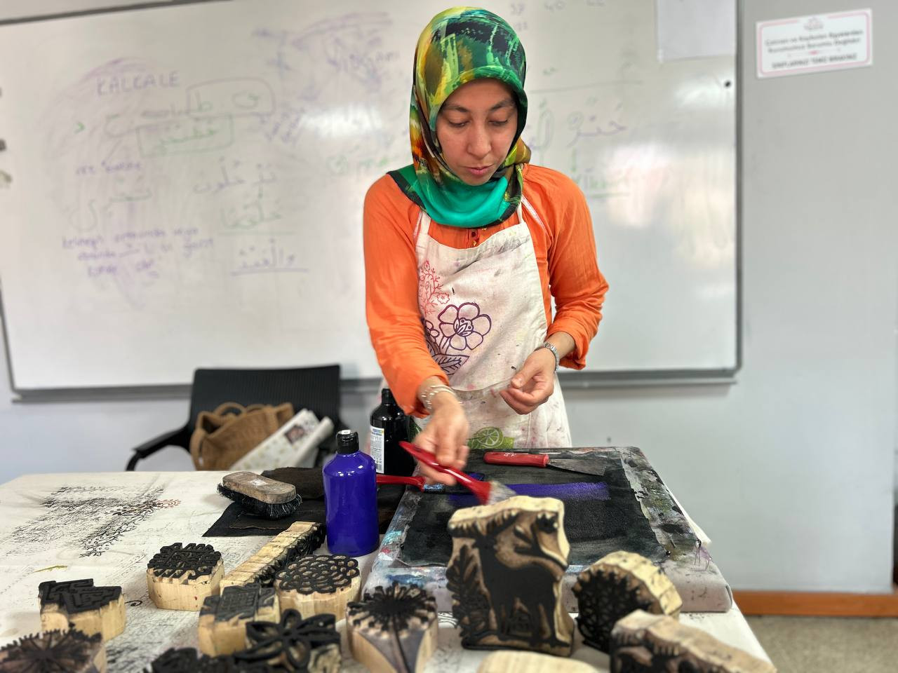 Hekimoğlu KARINCA El Emeği Eğitim Birimi'nin Tokat Baskı Atölyesi katılımcılara Tokat baskısını öğretirken kendi ürünleri üzerinde özgün tasarımlar yapma fırsatı sunuyor.