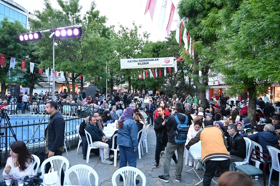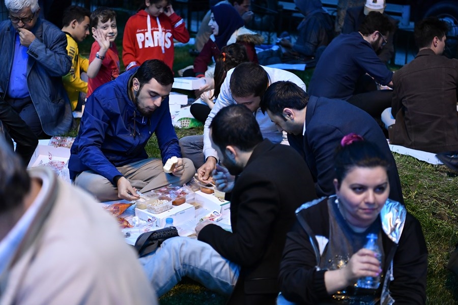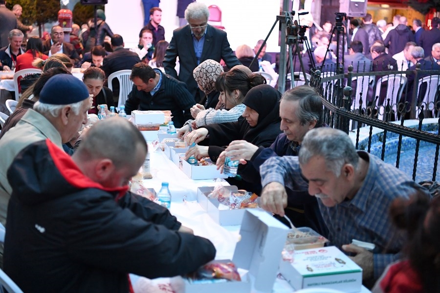 Fatih Belediye Başkanı M. Ergün Turan’ın ev sahipliğinde, Büyük Saray Meydanı’nın da kurulan iftar sofrasında 5 bin Fatihli, su ve kuş sesleri eşliğinde oruç açtı.