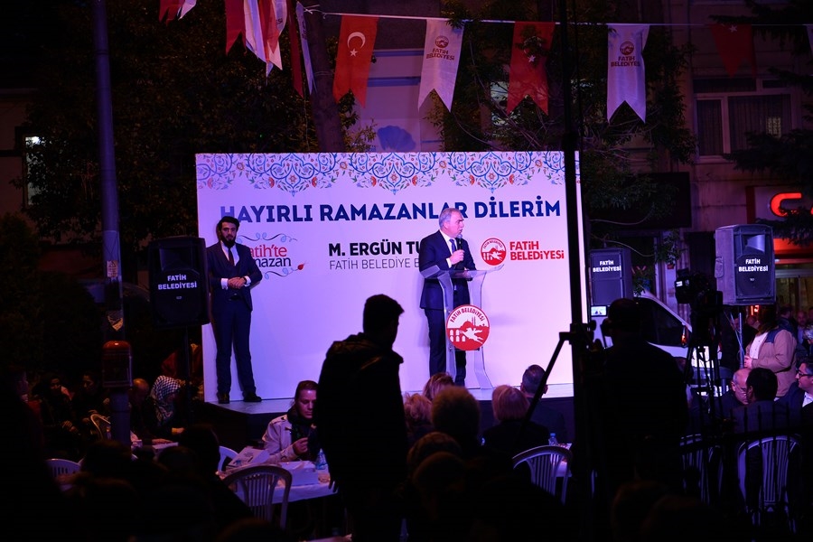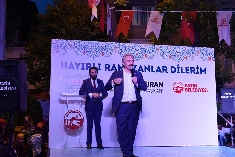 Başkan M. Ergün Turan, iftar sonrası yaptığı konuşmada, Ramazan ayının iyiliği, sevgiyi, merhameti, paylaşmayı ve bereketi arttırdığını belirtti. Fatih Belediyesi tarafından her akşam farklı mahallelerde kurulan iftar sofralarının bu güzel duyguları pekiştirdiğini söyleyen Başkan Turan; ‘Ramazan’ın bereketini Fatihlilerle aynı sofrada paylaştığımız sokak iftarlarımıza tüm hemşerilerimizi bekliyorum’ dedi.