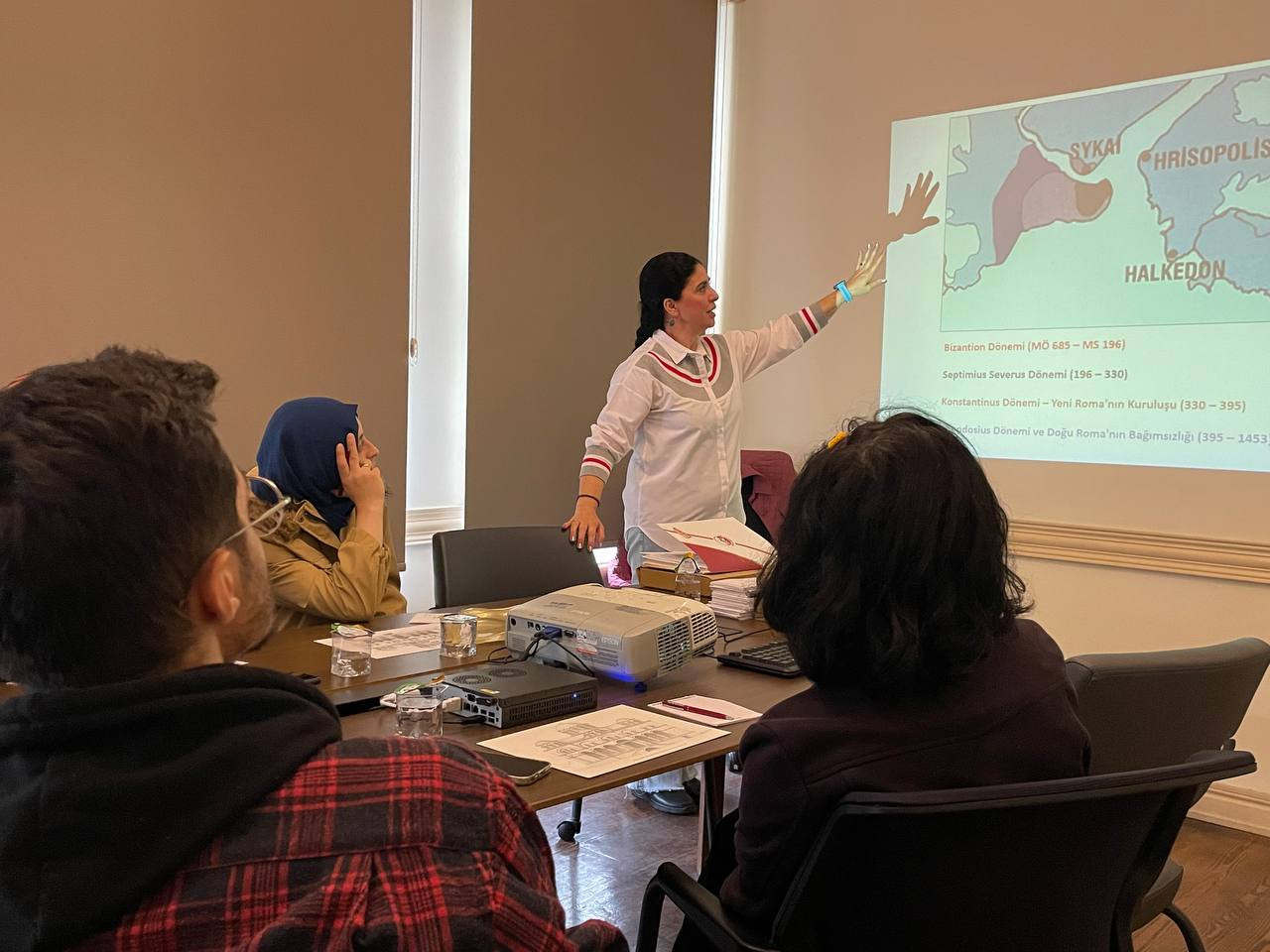 Program İstanbul’un üç farklı dönemini ele alan kapsamlı bir sunum ve sohbet bölümüyle devam etti. Şehrin tarihi, görseller, gravürler, haritalar ve belgeler eşliğinde detaylı bir şekilde aktarıldı. Katılımcılar İstanbul’un farklı dönemlerdeki yüzünü, kentin sosyal ve kültürel dönüşümlerini, mimarinin ve kent dokusunun nasıl şekillendiğini dinleyerek bu büyük şehrin hikâyesine tanıklık etme fırsatı buldu. Etkinlik boyunca katılımcılara İstanbul’un her döneminin ardında saklı kalan anlatılar, geçmişten bugüne uzanan izler ve bugünkü yaşamımıza bıraktığı miras üzerinde düşünme imkanı sunuldu.