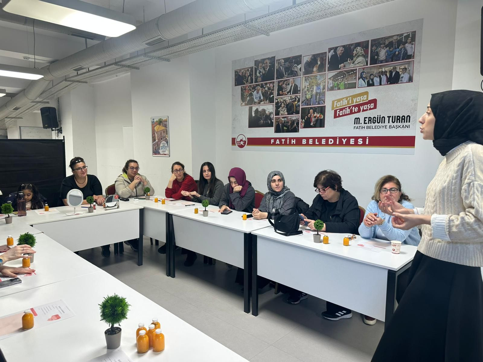 Kadın ve Aile Birimimizin FitFatih projesi kapsamında, Fındıkzade Çukurbostan Yaşam Merkezimizde düzenlenen “Cilt Dostu Tarifler” programında sağlıklı beslenme ve cilt bakımı bir arada ele alındı.