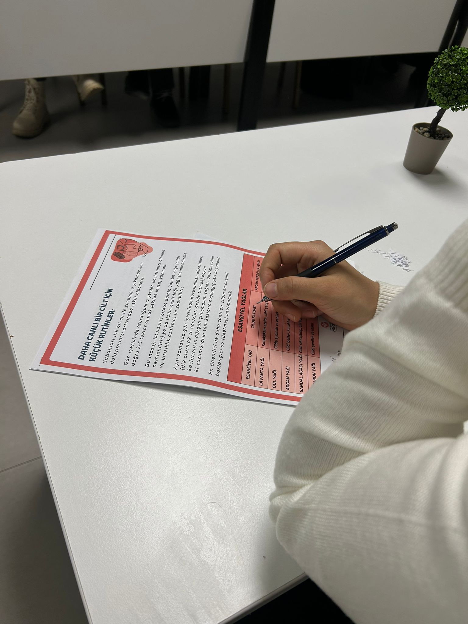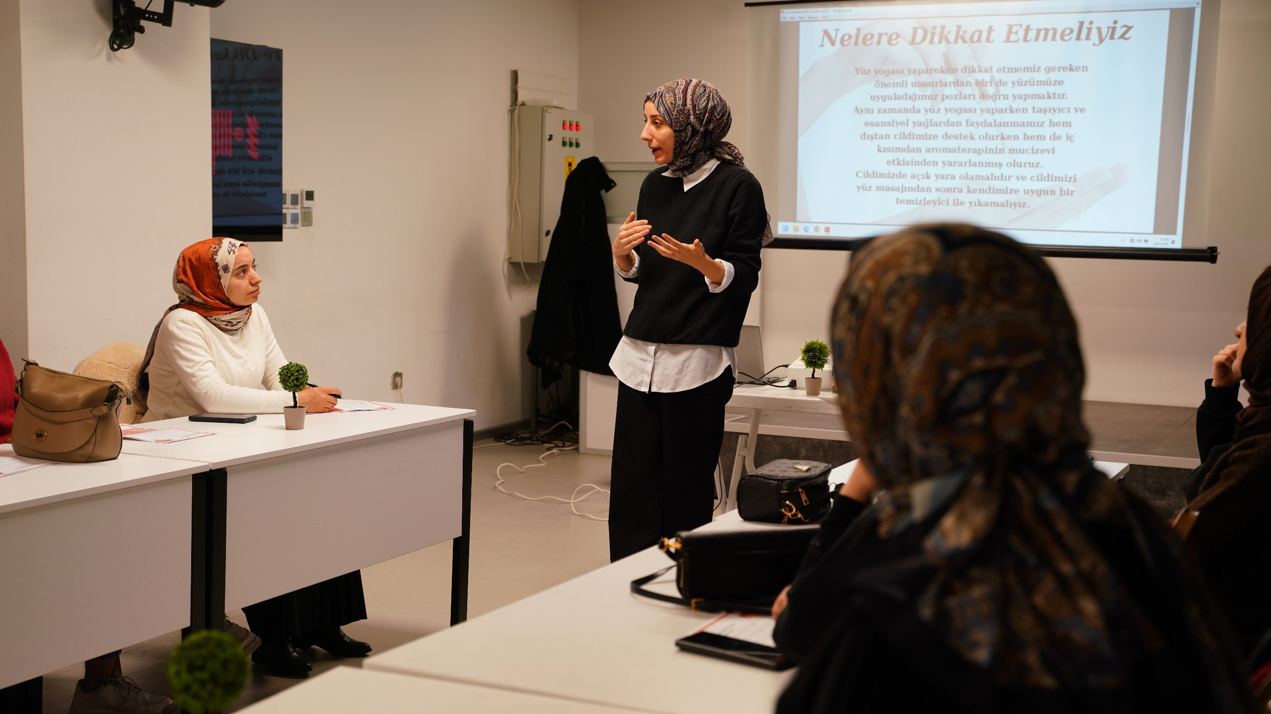 Etkinliğin dikkat çeken bölümlerinden biri de uygulamalı yüz masajı oldu. Katılımcılar ciltte dolaşımı hızlandıran ve kasları gevşeten teknikleri adım adım uyguladı. Bu tekniklerin düzenli yapıldığında hem cildin daha canlı görünmesini sağladığı hem de stresin etkilerini azalttığı ifade edildi. Masajın yalnızca estetik bir katkı değil, aynı zamanda ruhsal rahatlama sağlayan bir yöntem olduğunun altı çizildi.