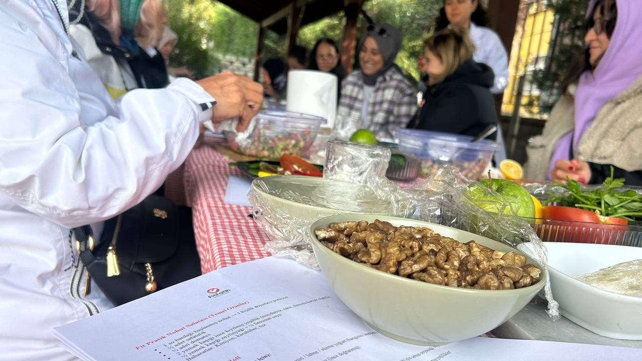 Etkinliğin ilk bölümünde diyetisyen katılımcılara sağlıklı beslenme alışkanlıklarının yaşam kalitesi üzerindeki etkilerini aktardı. Günlük öğünlerde karbonhidrat, protein, sebze ve sağlıklı yağ dengesinin korunmasının önemi anlatılırken pratik tarifler ve kolay uygulanabilecek beslenme yöntemleri örneklerle gösterildi. Katılımcılar yalnızca teorik bilgilerle yetinmedi; diyetisyen rehberliğinde uygulamalı olarak “Fit Gün Tabağı” hazırladı.
