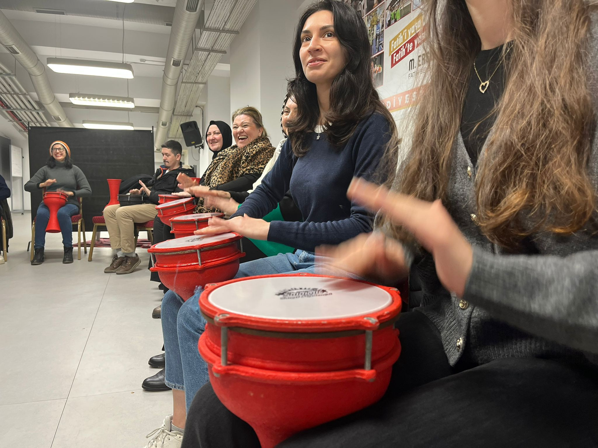 Etkinlik kapsamında katılımcıların dikkat dağınıklığını gidermesi, el-göz koordinasyonunu geliştirmesi ve motivasyonlarını artırması hedeflendi. Eğitmen eşliğinde yürütülen ritim çalışmalarında katılımcılar bireysel ve takım halinde darbuka çalarak belirlenen kompozisyonlara uyum sağlamaya çalıştı. Birlikte yapılan ritim egzersizleri, stresin azaltılmasına katkı sunarken aynı zamanda takım ruhunu güçlendirdi.