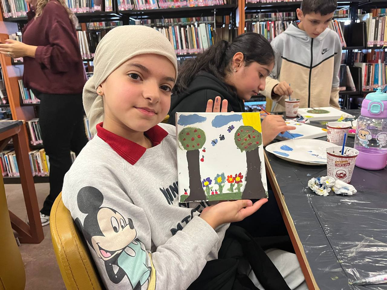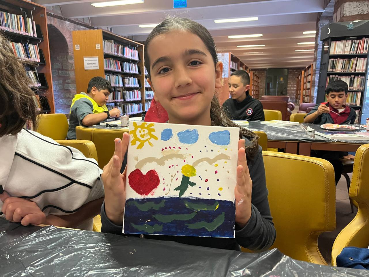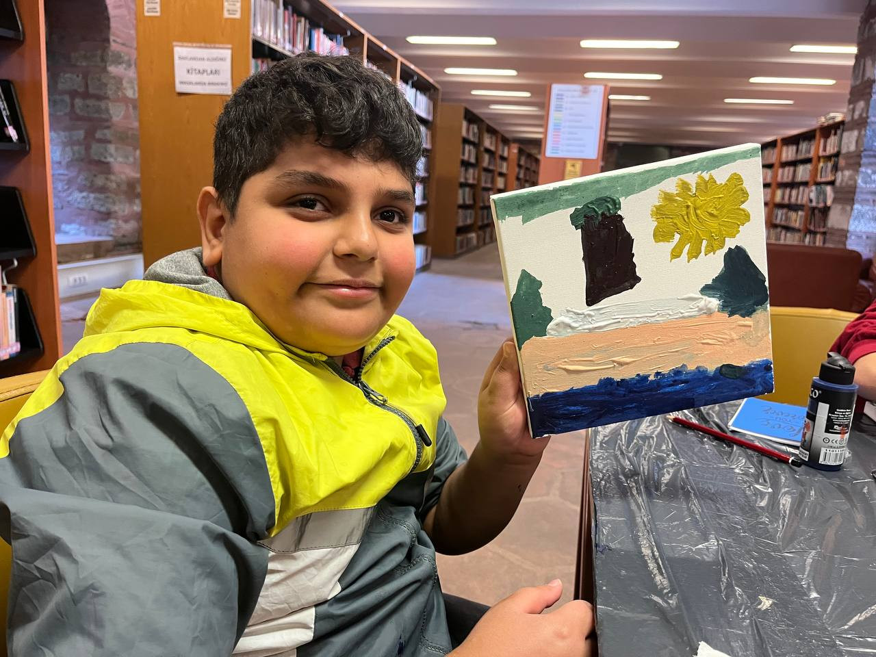 Orhan Kemal İl Halk Kütüphanesi’nin çocuklara güven veren sakin atmosferi, etkinliğe ayrı bir boyut kattı. Her bir fırça darbesi yalnızca sanatın değil; sessizliğin, düşünmenin ve içe dönük bir keşfin ifadesi oldu.