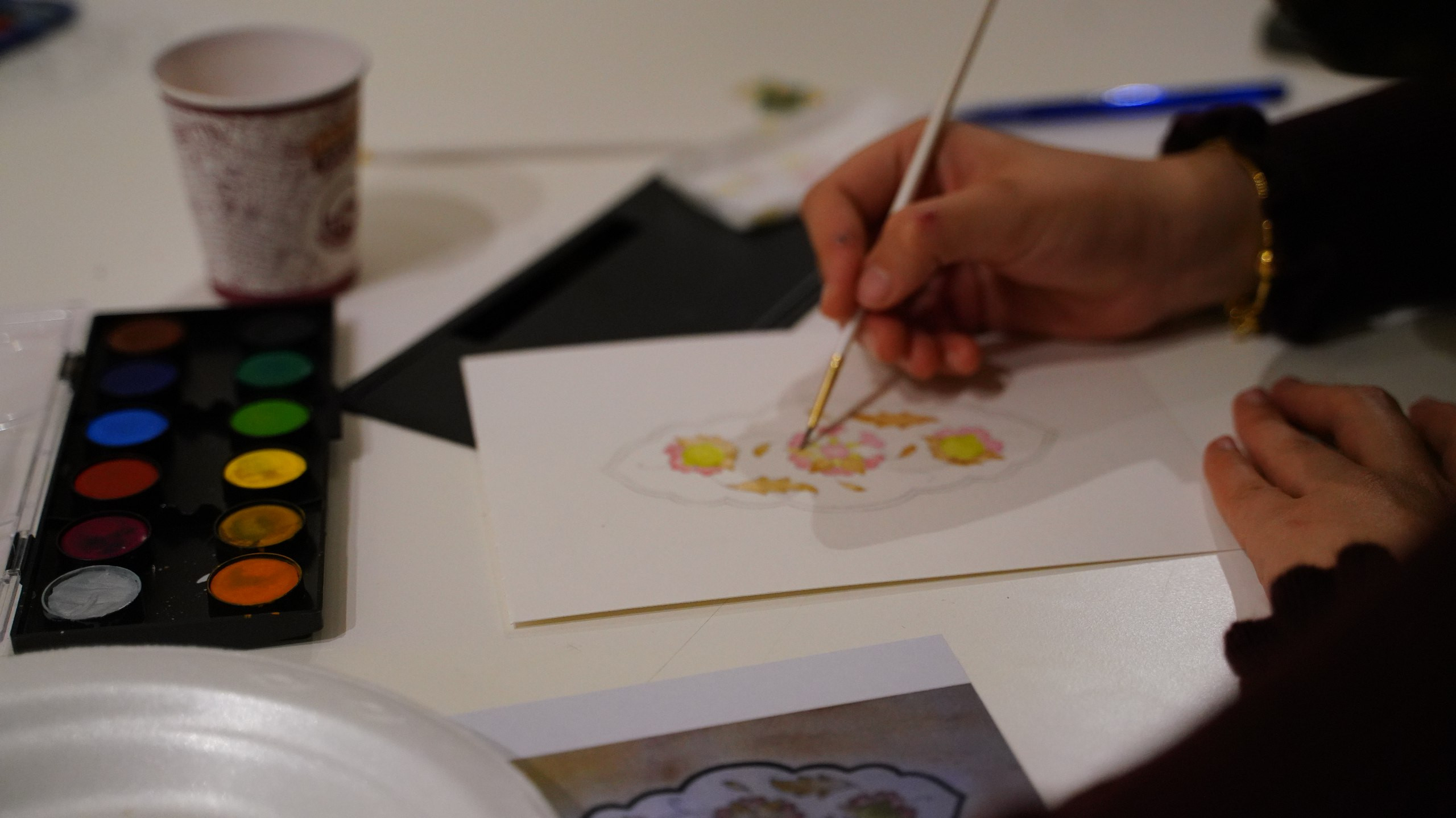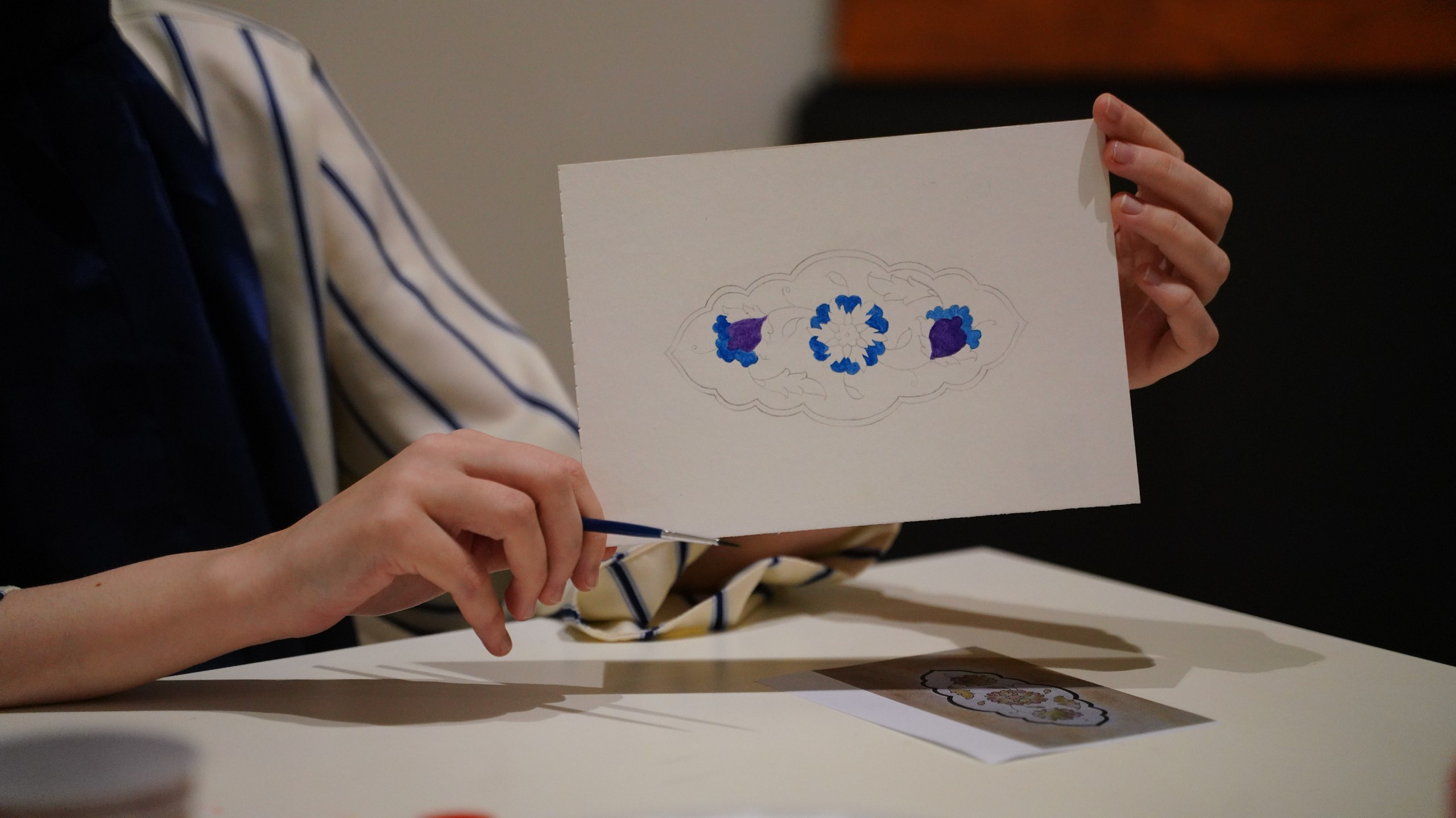Kadırga Sanat Galerileri’nde gerçekleşen “Tezhip Sanatı ile Kartpostal Tasarım Atölyesi”nde katılımcılar, Osmanlı’nın zarif süsleme sanatını tanıyıp kendi kartpostallarını tasarlayarak keyifli bir gün geçirdi.