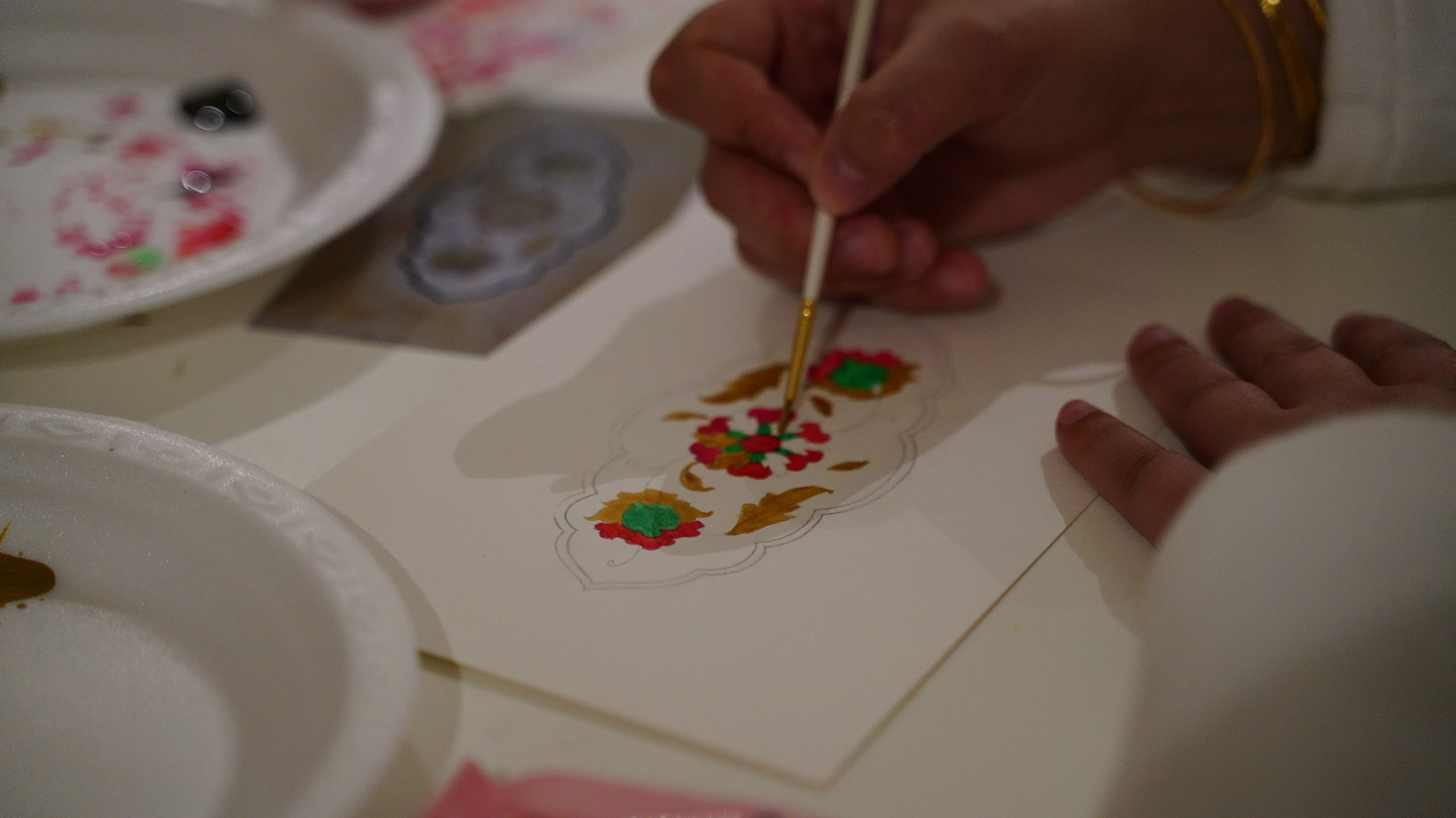 Program kapsamında tezhip sanatının tarihsel gelişimi, kullanılan malzemeler motiflerin sembolik anlamları ve uygulama teknikleri katılımcılarla paylaşıldı. Eğitim sürecinde bu sanatın inceliklerini öğrenen katılımcılar el becerilerini kullanarak kendi özgün tasarımlarını ortaya koyma fırsatı yakaladı. Tasarlanan kartpostallar hem sanatsal bir üretimin ürünü hem de kişisel bir hatıra olarak katılımcıların yanında yerini aldı.