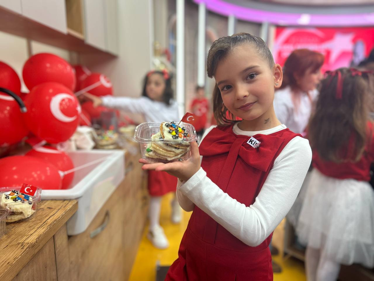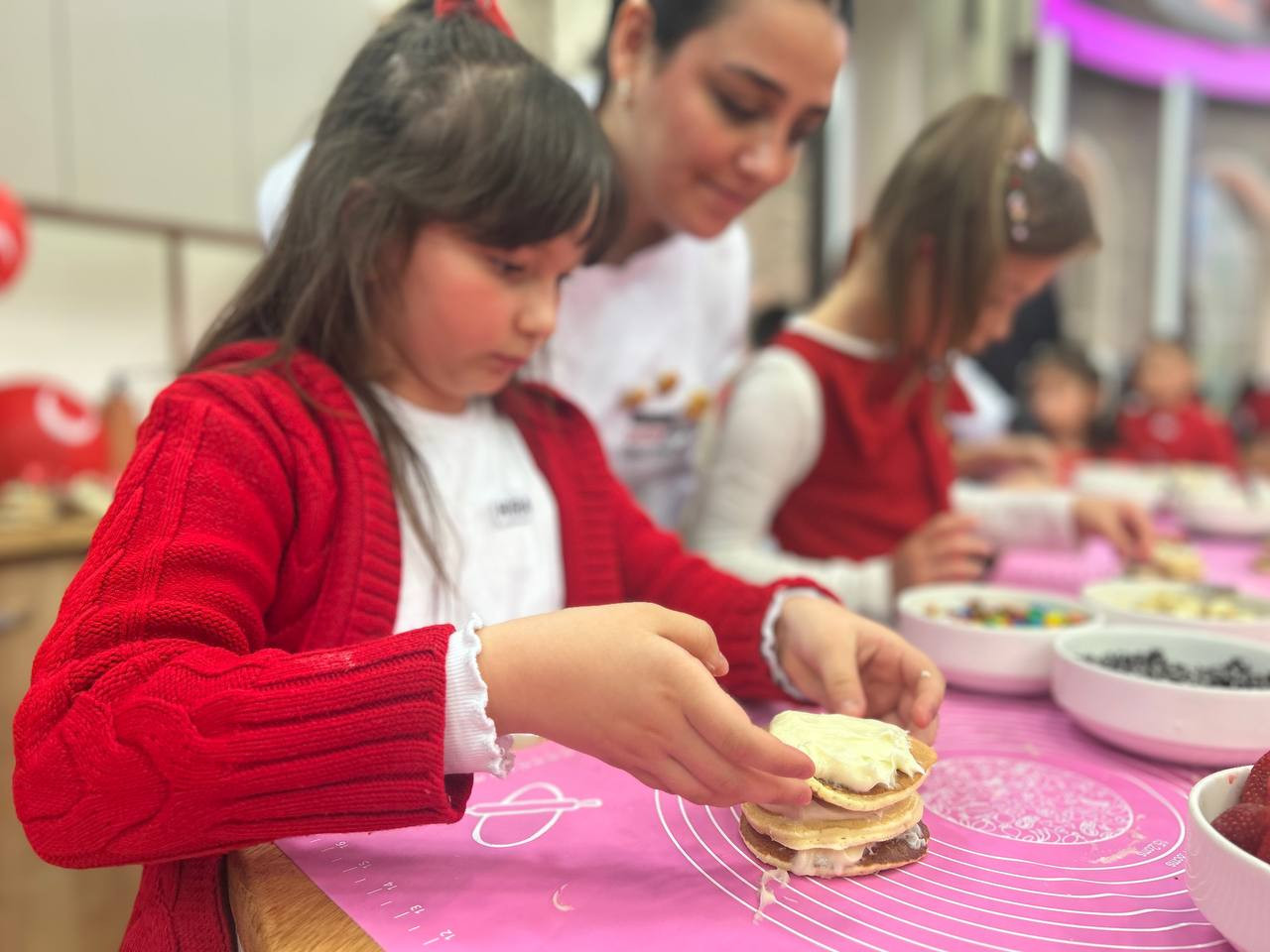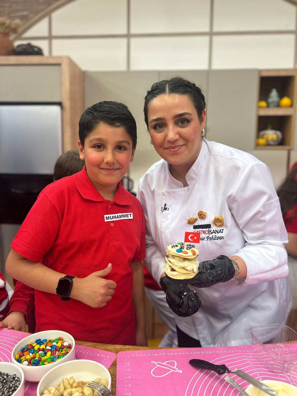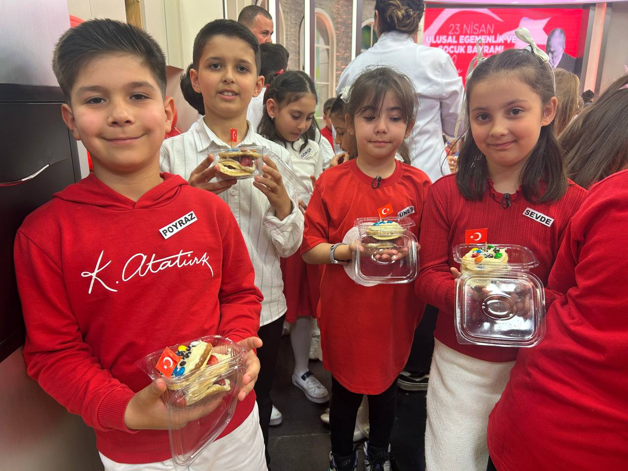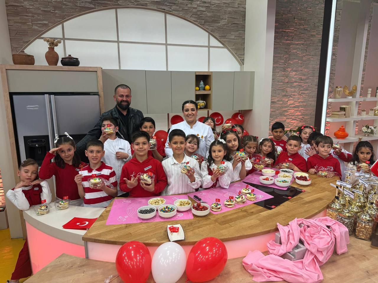 Canlı yayın kapsamında pasta şefi Öznur Pehlivan eşliğinde 23 Nisan’a özel pasta hazırlığı gerçekleştirildi. Programın uygulamalı bölümünde çocuklar, pankek, pastacı kreması ve meyveleri bir araya getirerek pankek pasta yapım sürecine aktif olarak katıldı. Bu süreçte öğrenciler yalnızca tarif uygulamakla kalmadı; ölçü kullanımı, malzeme tanıma, sıralı işlem yürütme ve birlikte üretme gibi temel becerileri deneyimleme fırsatı buldu.