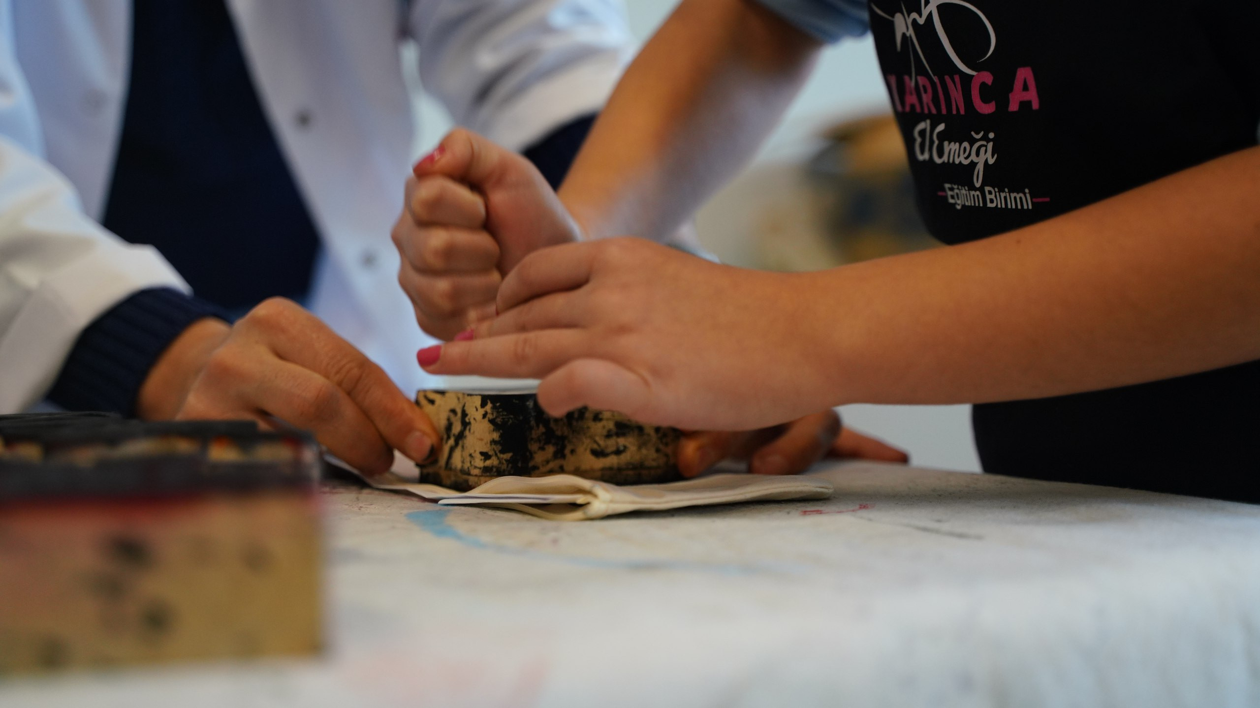 Etkinlik kapsamında her çocuğa sade bir kalem kutusu verildi. Anne ve çocuklar birlikte geleneksel tokat baskı tekniğiyle farklı desenler oluşturdu. Ardından kumaş boyama çalışmalarıyla kalem kutularını renklendiren katılımcılar, son olarak rengârenk ponponlarla tasarımlarını tamamladı. Böylece her çocuk, annesiyle birlikte ürettiği ve gündelik yaşamında kullanabileceği özgün bir kalem kutusuna sahip oldu.
