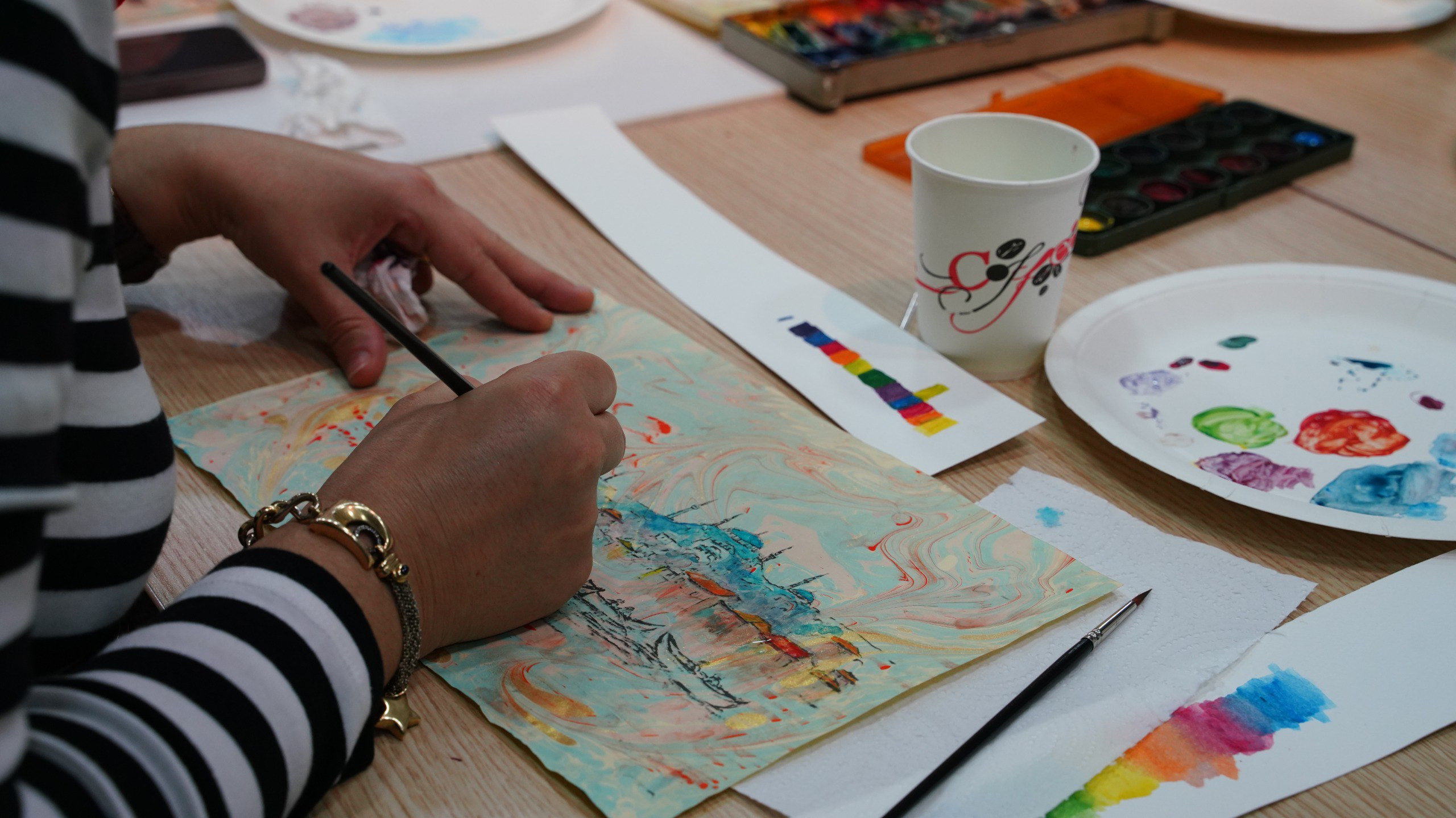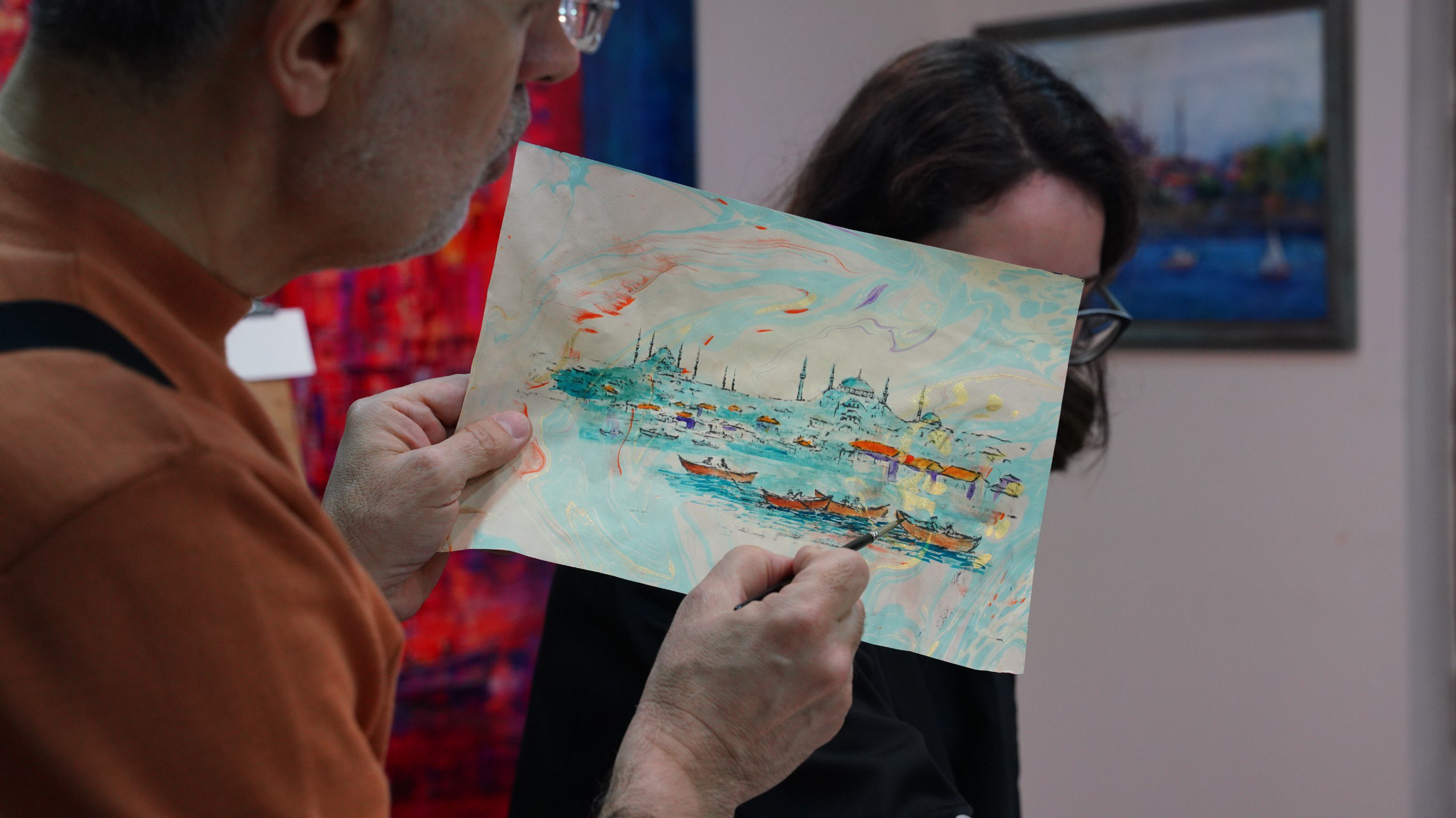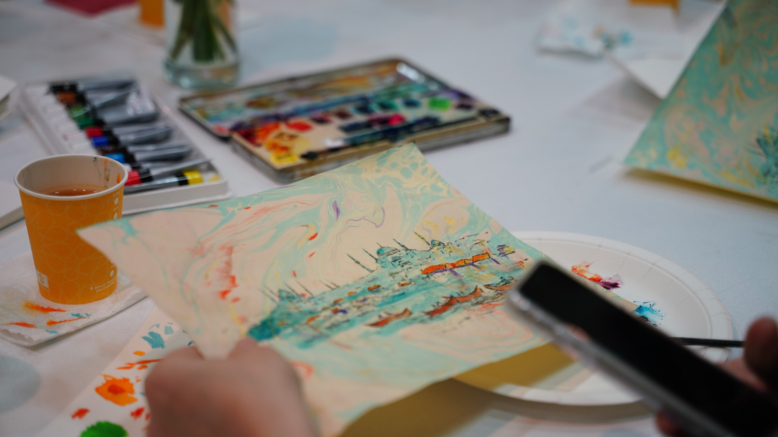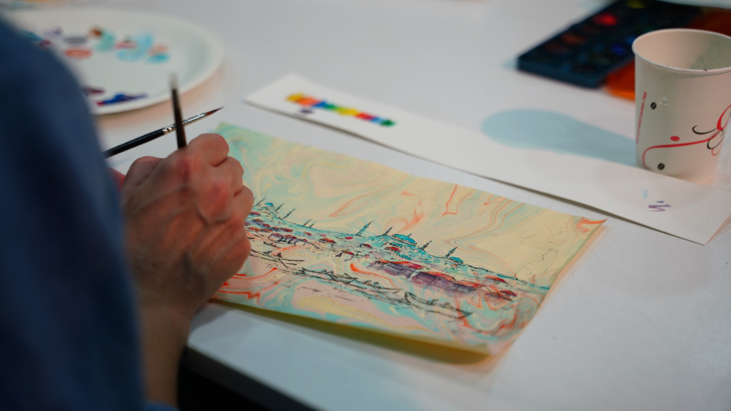 KARINCA El Emeği Eğitim Birimimiz ile Ayvansaray'da, Ebru Zemin Üzerine İstanbul Silüeti Çalışmasıyla Gelenek ve Şehir Hafızası Aynı Zeminde Buluştu