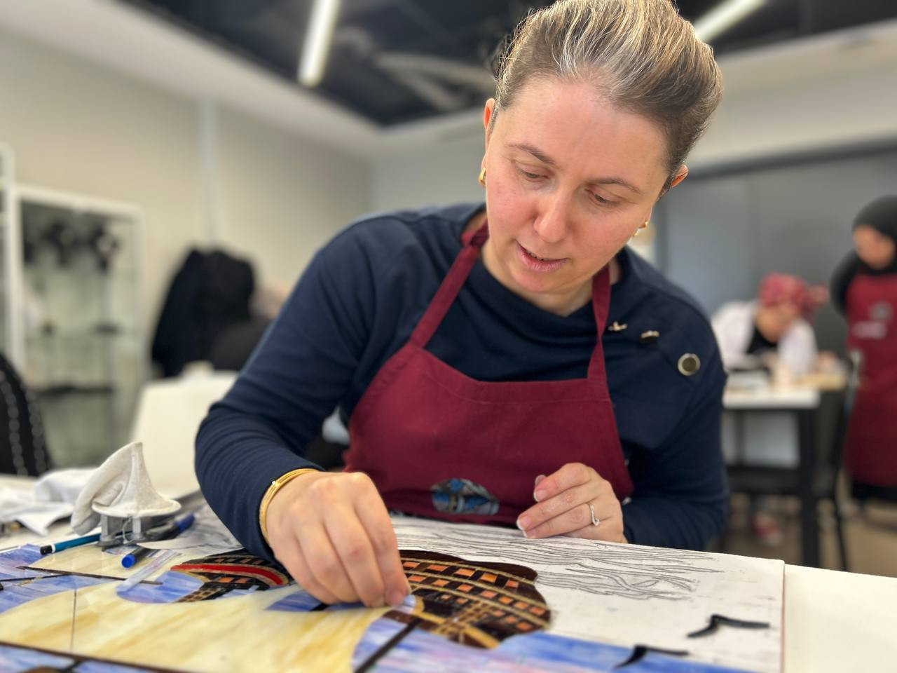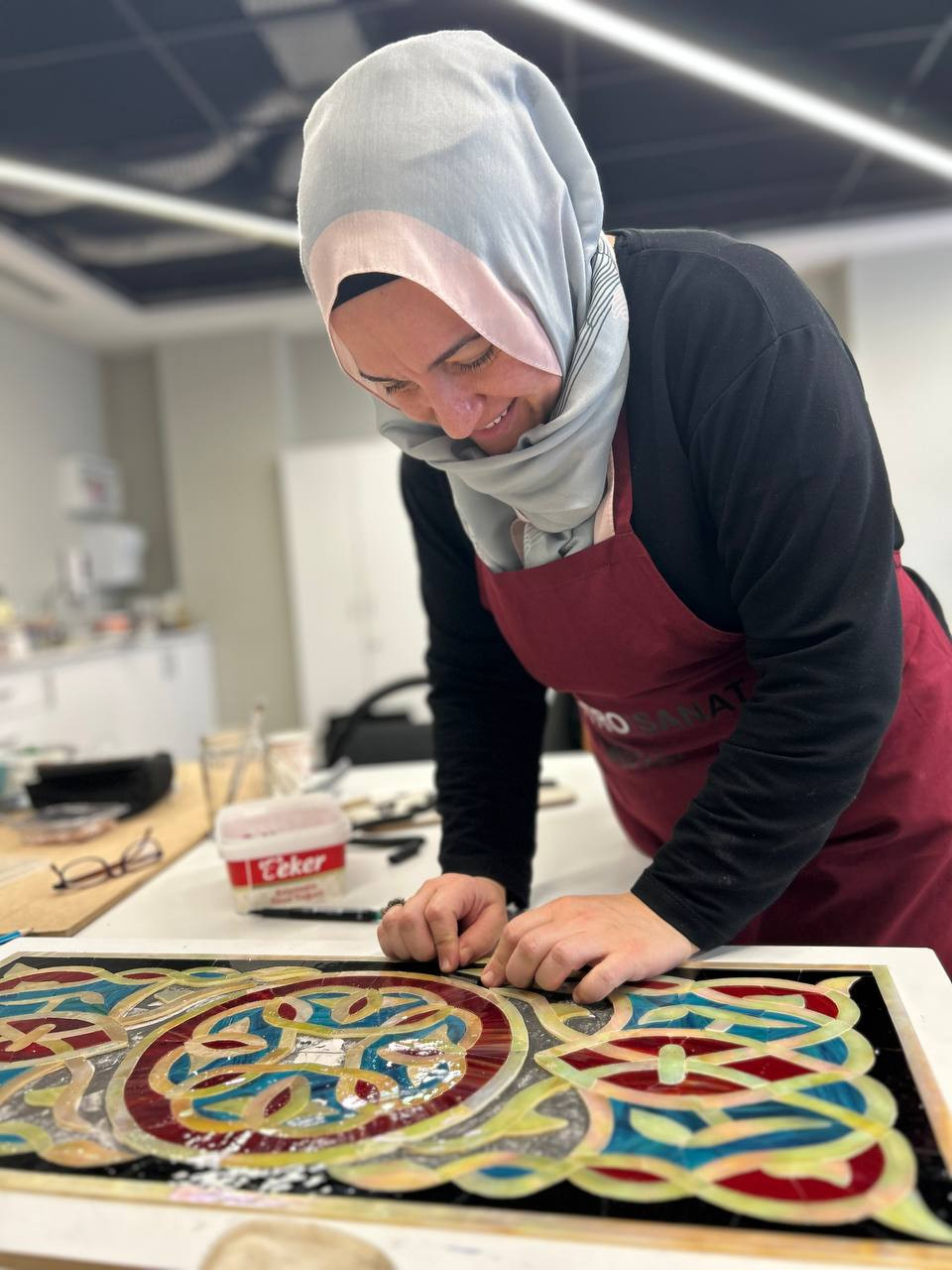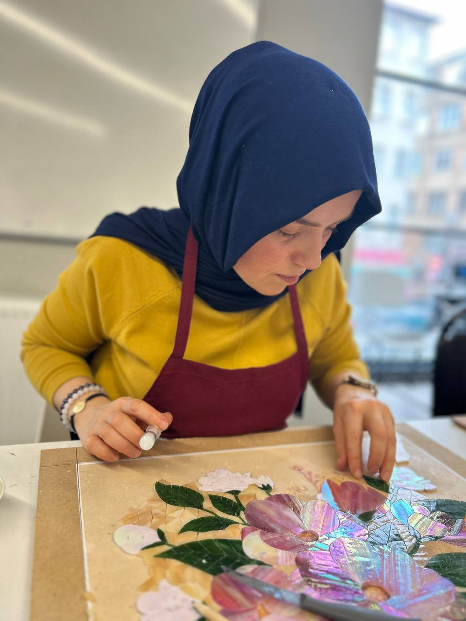 KARINCA El Emeği Eğitim Birimimiz tarafından yürütülen MEB onaylı 132 saatlik sertifikalı kurs programı kapsamında katılımcılar; mozaik sanatına yönelik teknik uygulama bilgisi, tasarım bakış açısı ve üretim disiplini kazanıyor.