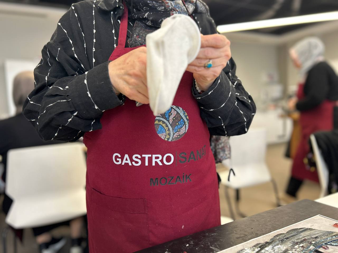 Eğitimlerde ağırlıklı olarak renkli cam mozaik taşları kullanılıyor. Bununla birlikte mozaik çalışmalarının farklı materyallerle de gerçekleştirilebileceği katılımcılara aktarılıyor. Ahşap, seramik, doğal taş ve benzeri yüzeylerde uygulanabilen mozaik teknikleri sayesinde katılımcılar farklı üretim alternatifleri hakkında bilgi sahibi oluyor. Bu yaklaşım, üretim sürecinde malzeme çeşitliliğini artırırken aynı zamanda geri dönüşüm yaklaşımının üretim süreçlerine entegre edilmesine de katkı sağlıyor.