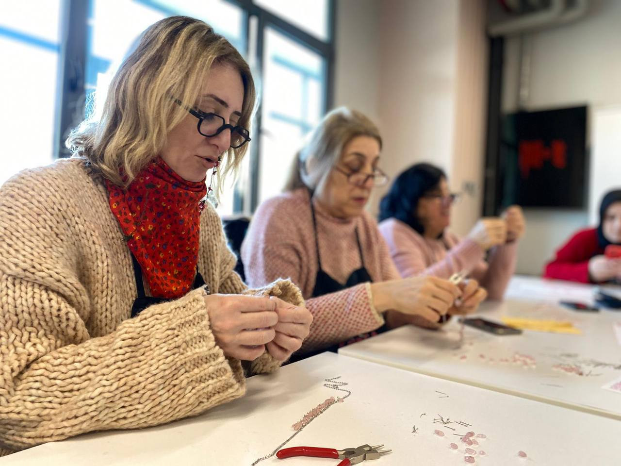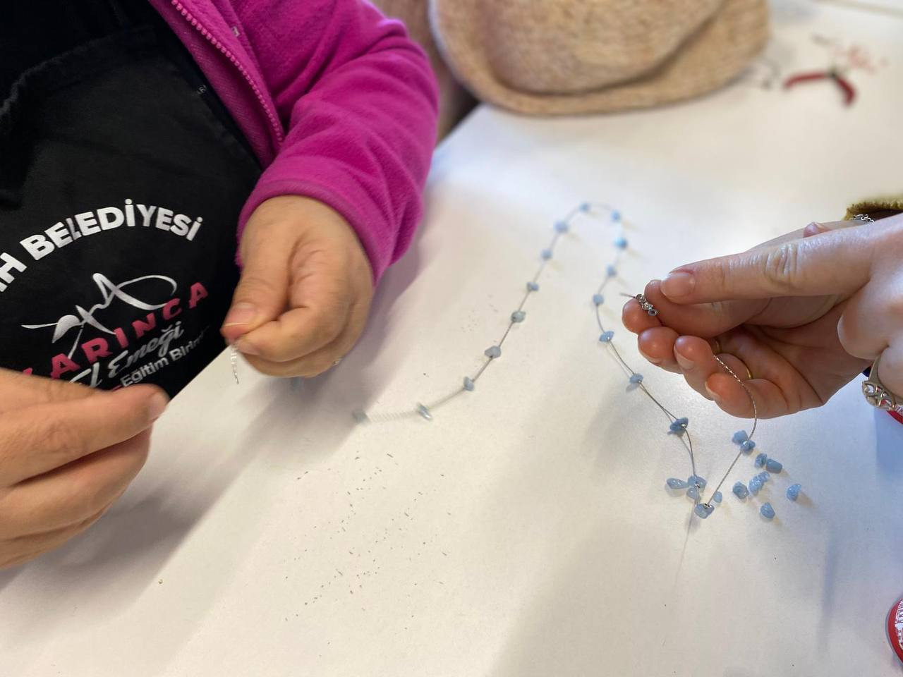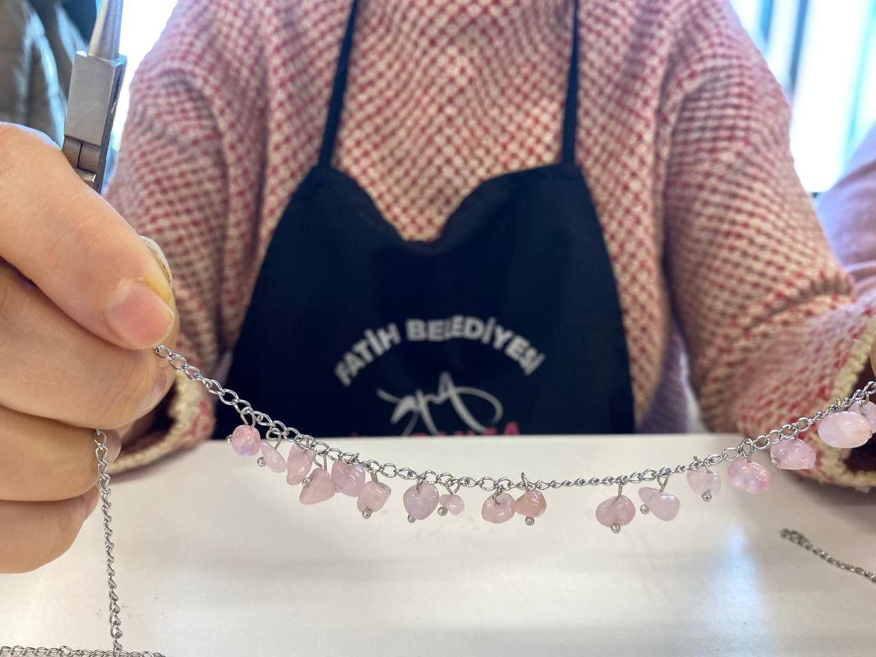Fatih Belediyesi’nin kadınlara yönelik mahalle temelli eğitim ve üretim programlarını yürüten KARINCA El Emeği Eğitim Birimi, Fındıkzade Eğitim Birimi’nde gerçekleştirdiği “Doğal Taşlarla Takı Tasarımı” başlıklı çalışmayla bir kez daha üretimin birleştirici yönünü öne çıkardı. Kadınlara yönelik olarak düzenlenen bu eğitim programında takı yapımının hem teknik boyutuna hem de estetik ve kişisel tercihleri yansıtan yaratıcı yönüne odaklanıldı.