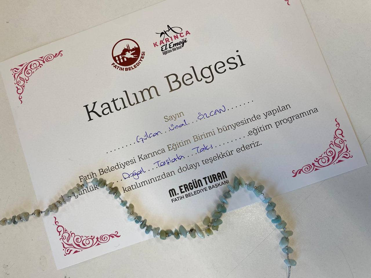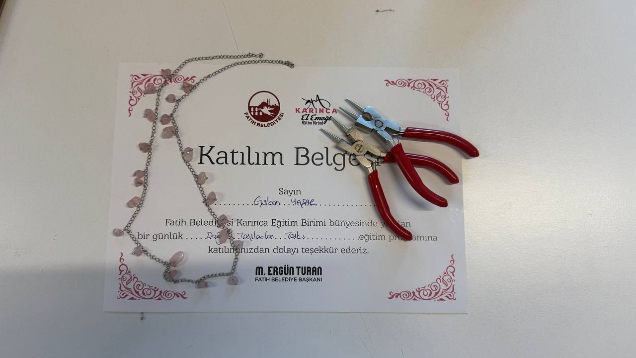 Tamamlanan kolyeler sadece takı değil, aynı zamanda katılımcıların kendi emekleriyle ortaya çıkardıkları anlamlı bir hatıra niteliği taşıdı. Eğitimin sonunda kursiyerlerin hem el becerilerinde gelişme sağladığı hem de üretkenlik duygusuyla sosyal bağlarını pekiştirdiği gözlemlendi.
