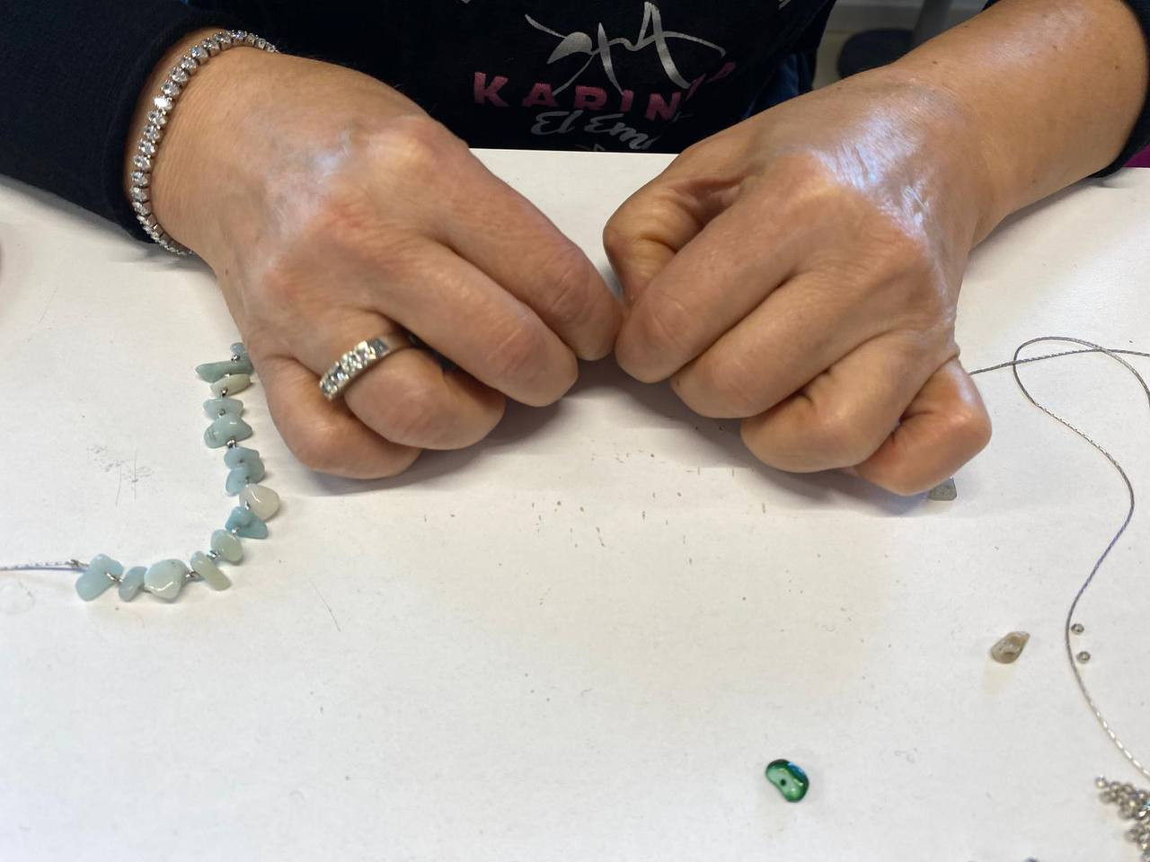 Program katılımcılara takı yapımına dair temel bir çerçeve sunarak başladı. İlk aşamada doğal taşların özellikleri, renk kombinasyonları ve hangi tür zincir ya da kapama aparatlarıyla uyum sağlayabilecekleri üzerine bilgilendirme yapıldı. Ardından takı yapımında kullanılan temel araç-gereçlerin tanıtımı gerçekleştirildi. Kargaburun pense, çeşitli zincir türleri, halkalar, kapamalar ve bağlantı aparatları gibi malzemeler üzerinden uygulamalı anlatımlarla sürece geçildi.