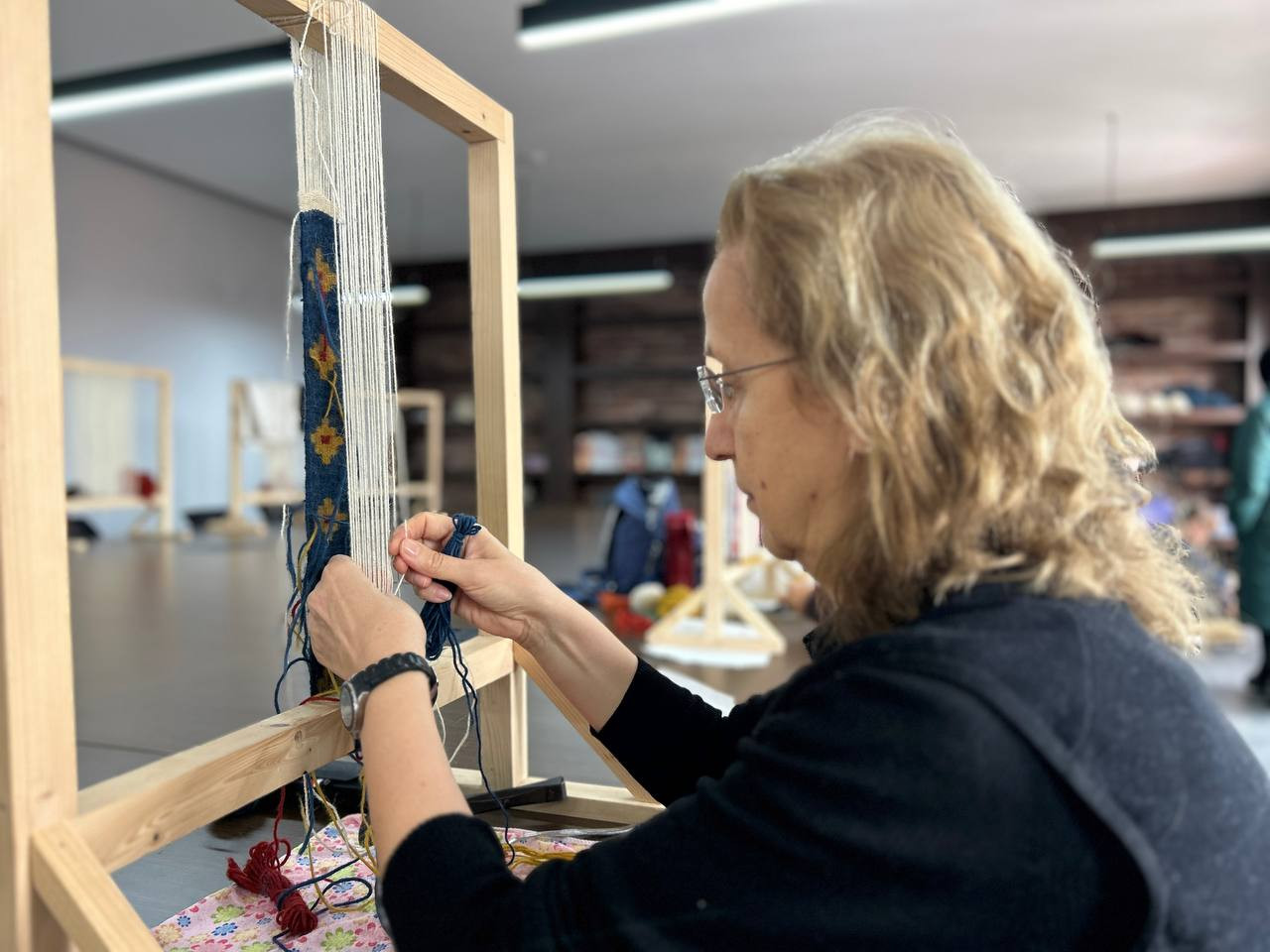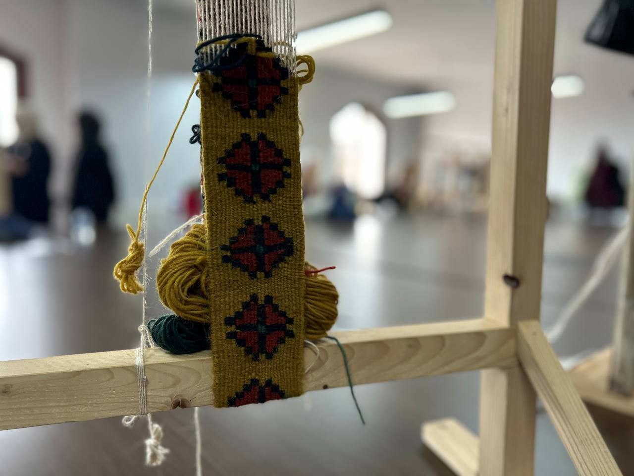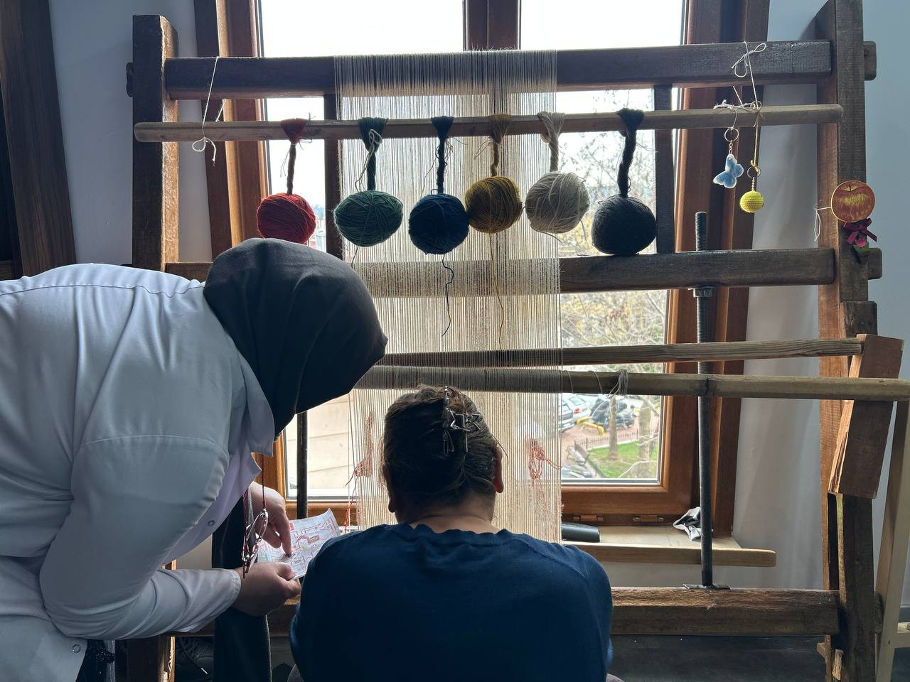 Kursiyerler, programın ilerleyen aşamalarında halı dokumaya hazırlık yaparak kendi dokuma çalışmalarını üretme becerisi kazanıyor. Bu süreç, yalnızca teknik bir üretim çalışması değil, aynı zamanda sabır, dikkat, planlama ve el becerisi gerektiren bir üretim disiplini kazandırıyor. Kursiyerler, her aşamasını kendilerinin yürüttüğü bu üretim süreci sayesinde geleneksel dokuma kültürünü uygulamalı olarak öğrenme ve geliştirme imkânı elde ediyor.