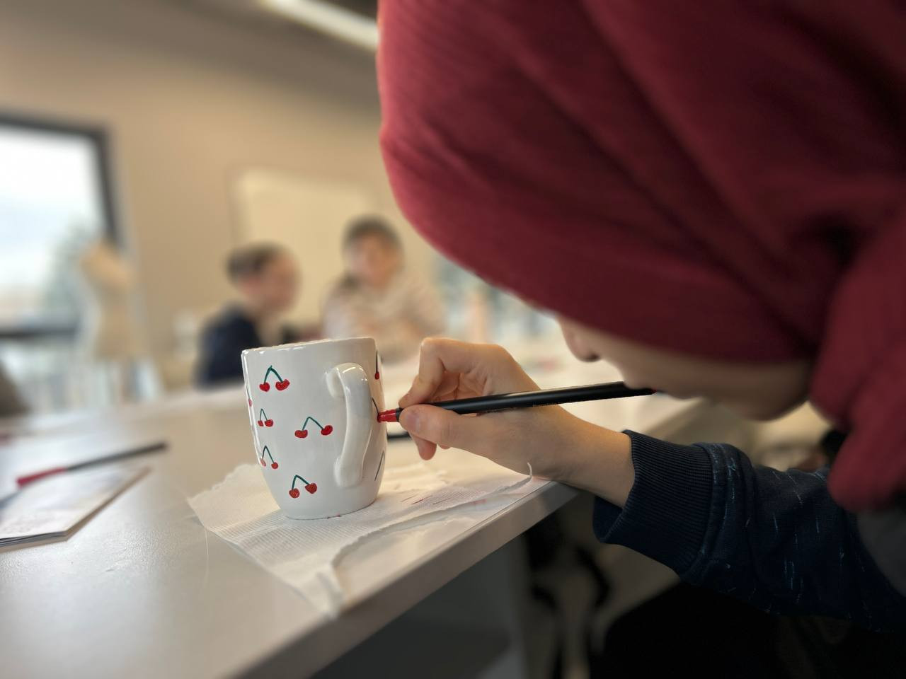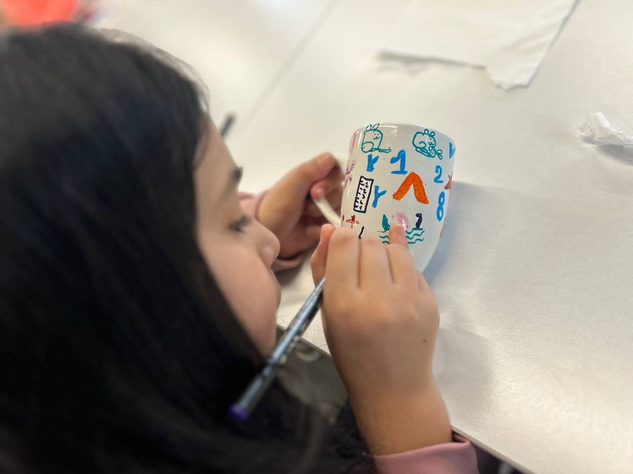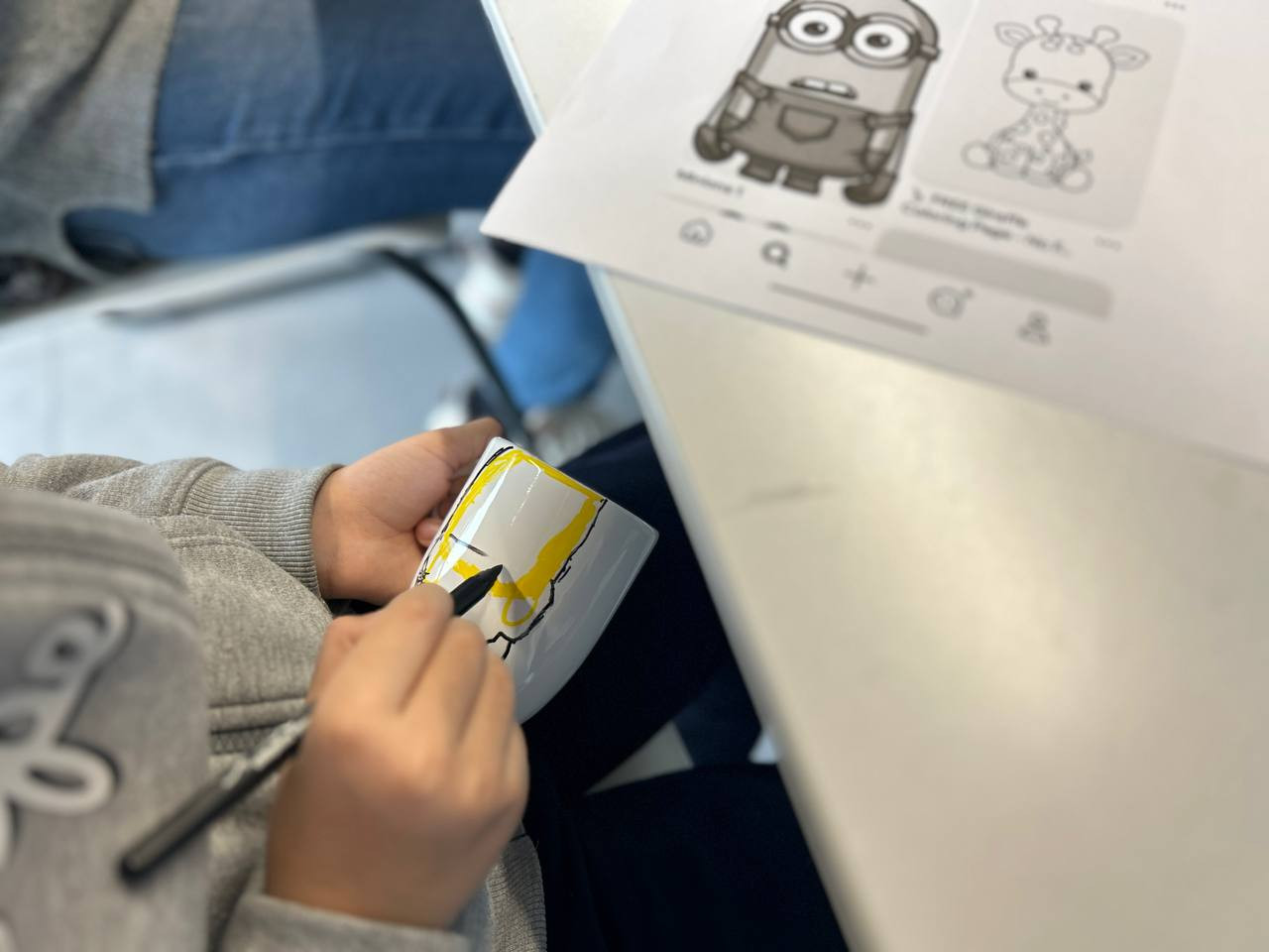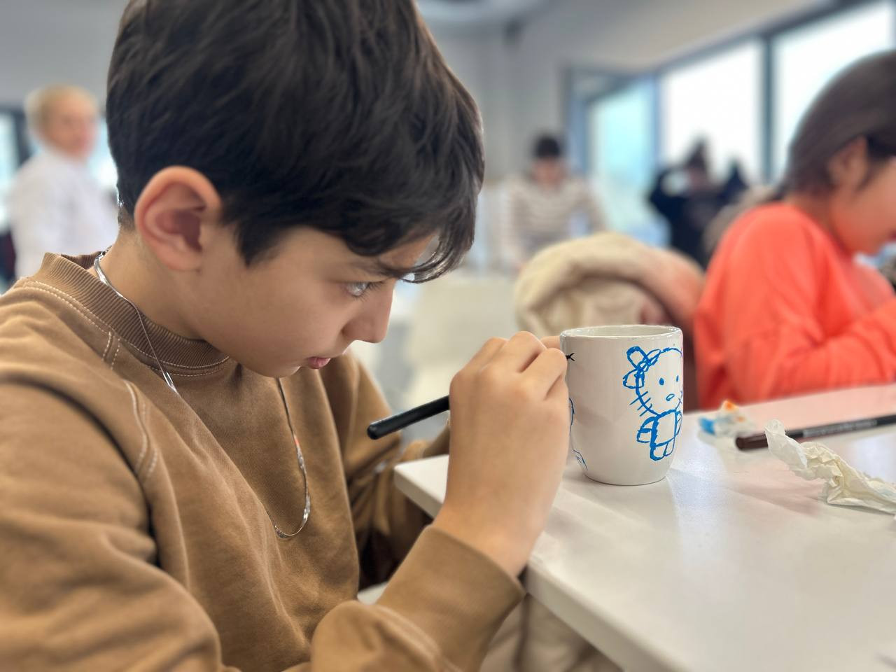 Etkinlikte çocuklar, beyaz kupalar üzerine porselen kalemleriyle diledikleri renk ve desenleri uyguladı. Çizim sürecinde isteyen katılımcılar, etkinlik ekibi tarafından hazırlanan örnek çalışmalardan yararlanırken, isteyenler tamamen kendi hayal güçlerini yansıtan tasarımlar ortaya koydu. Porselen boyama eğitmeni eşliğinde yürütülen çalışmada, çocukların dikkat, odaklanma ve ince motor becerilerinin desteklenmesi hedeflendi.