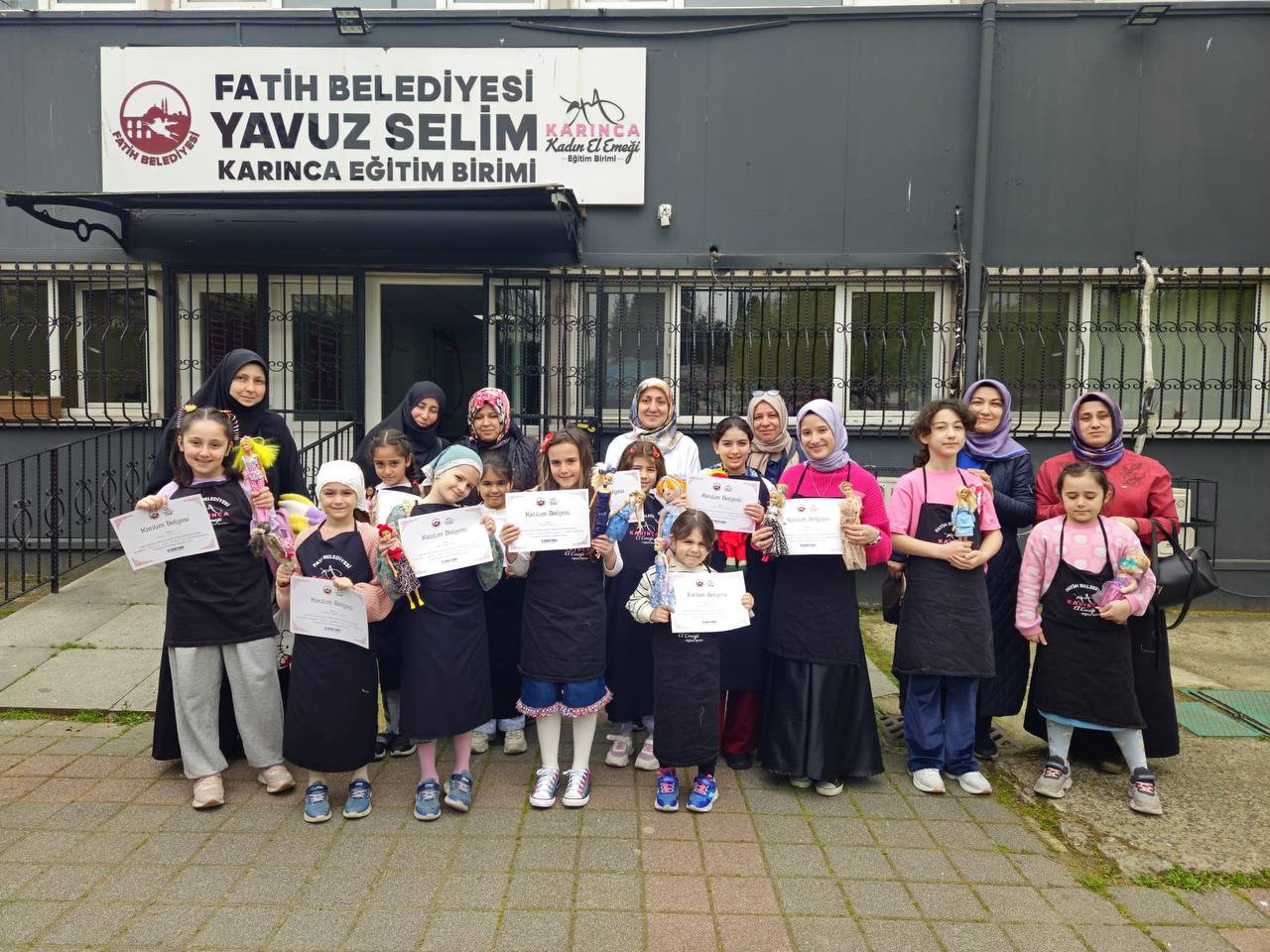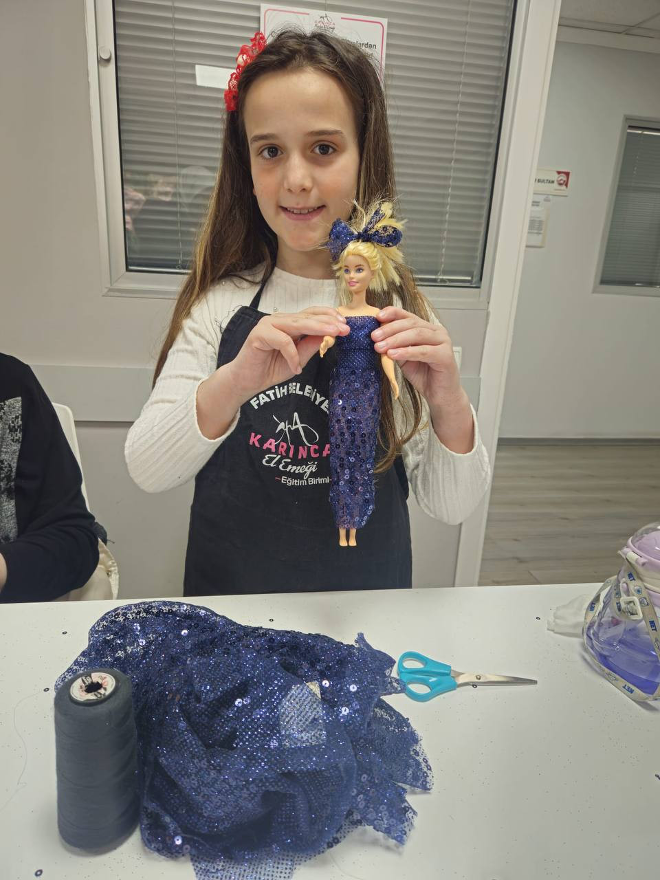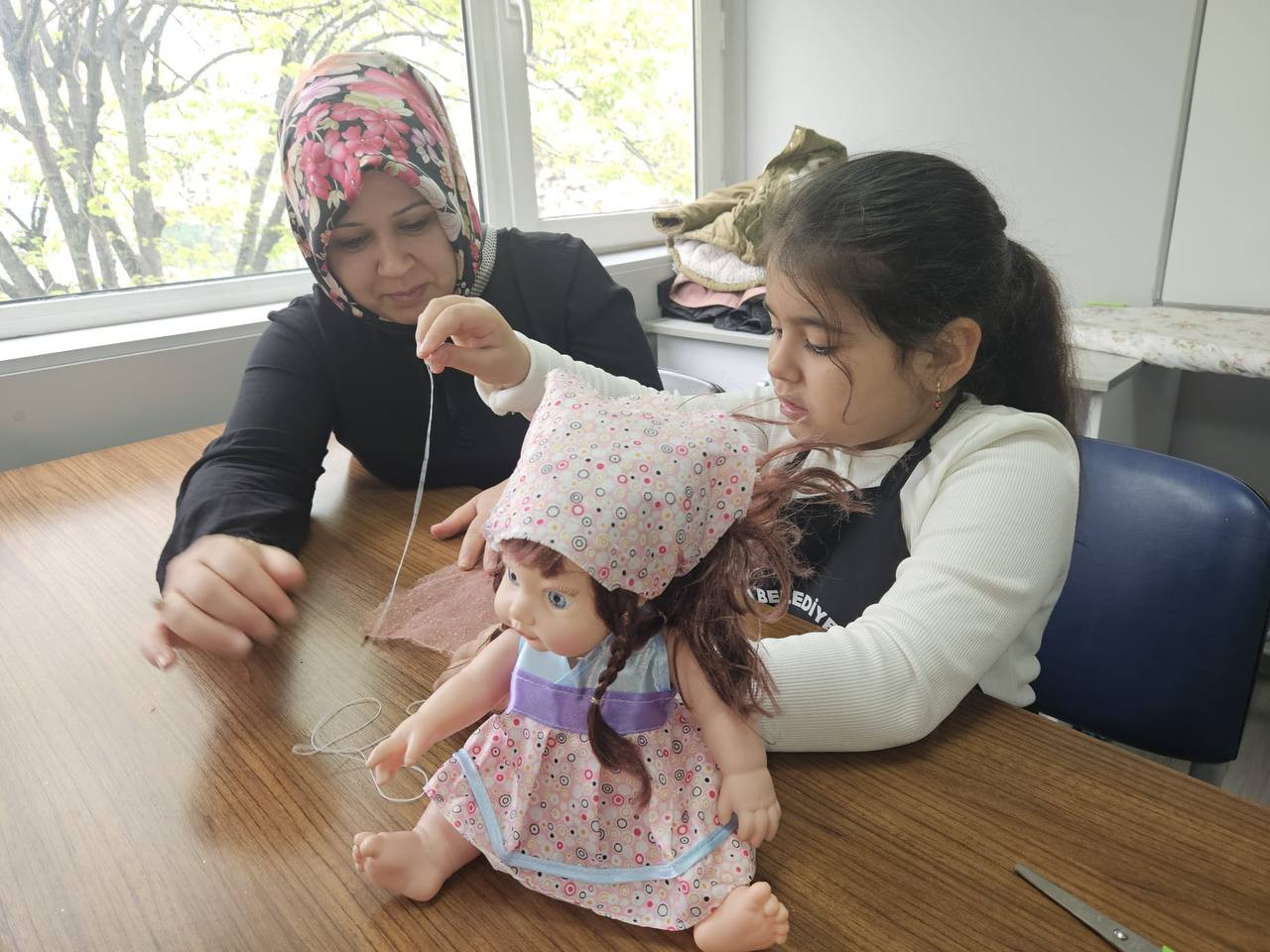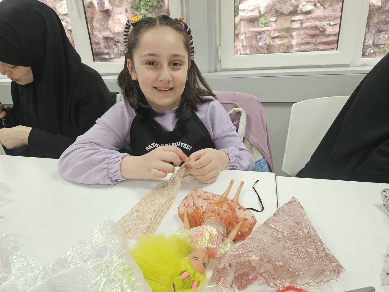 Fatih Belediyesi’nin katkılarıyla düzenlenen bu atölyede anneler ve çocukları oyuncak bebeklerine el yapımı kıyafetler dikerek hem el becerilerini geliştiriyor hem de kaliteli zaman geçiriyorlar. Katılımcılar kumaş seçimi, dikim teknikleri ve süsleme yöntemleriyle yaratıcılıklarını ortaya koyma şansı yakalıyor. Anneler çocuklarıyla beraber çalışarak onlara hem destek oluyor hem de birlikte üretmenin keyfini çıkarıyor.