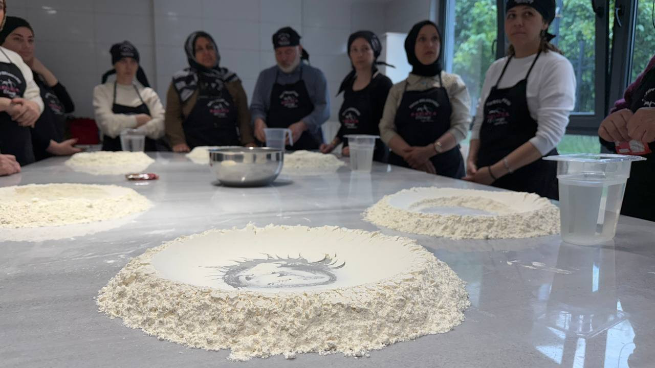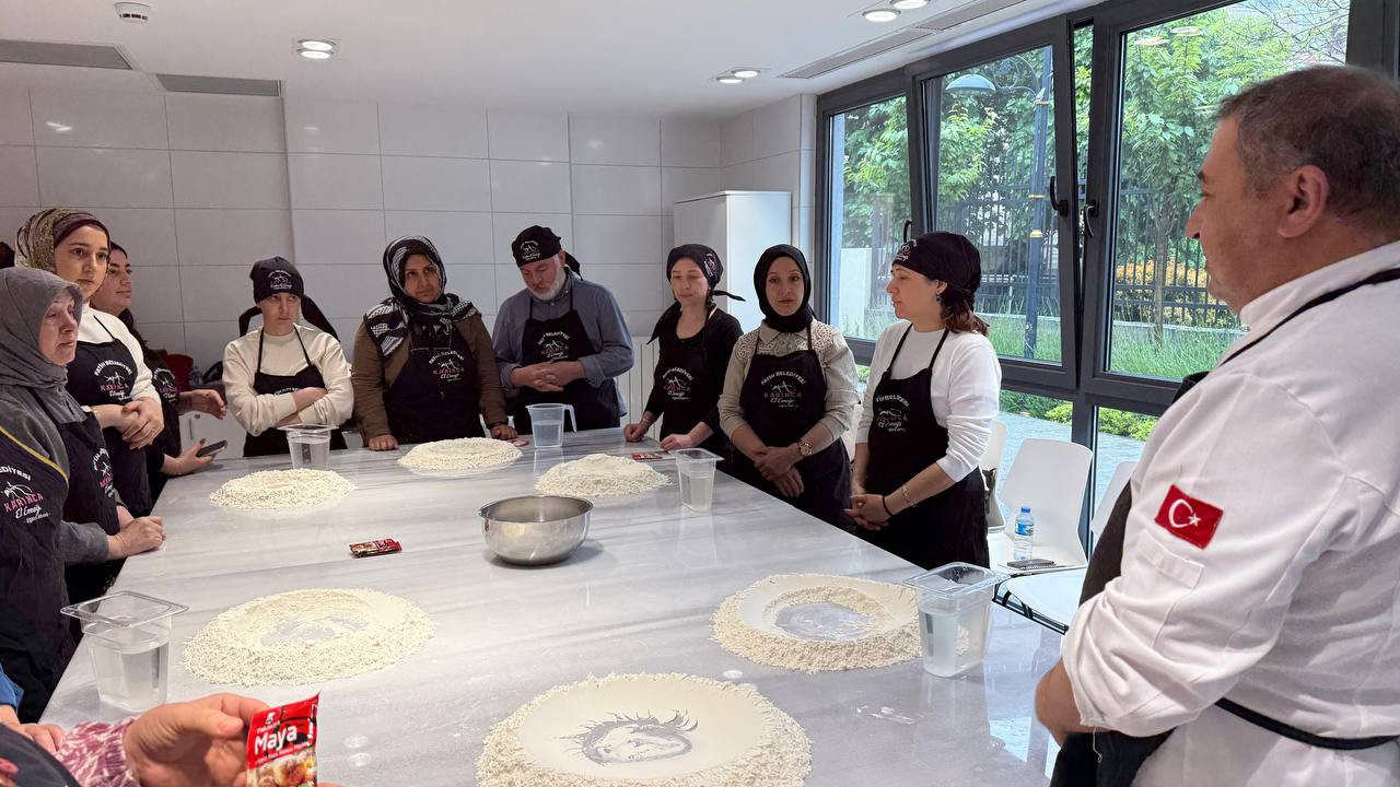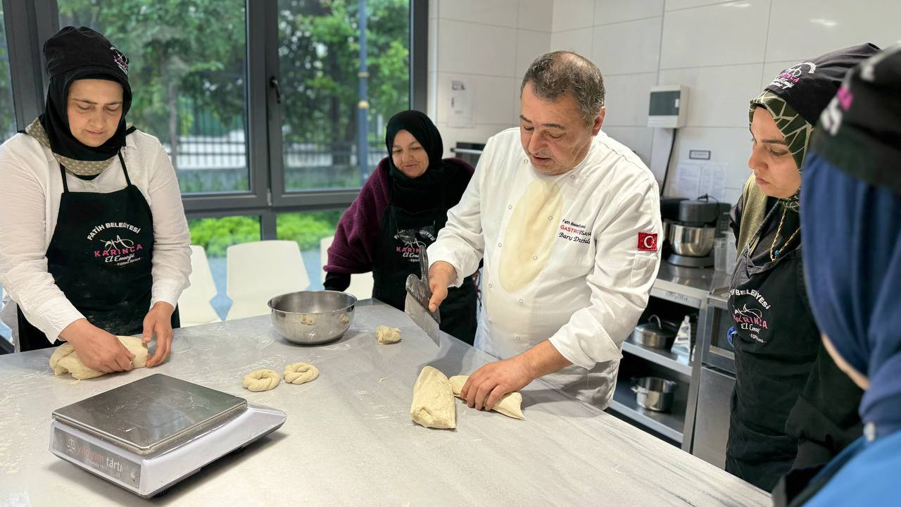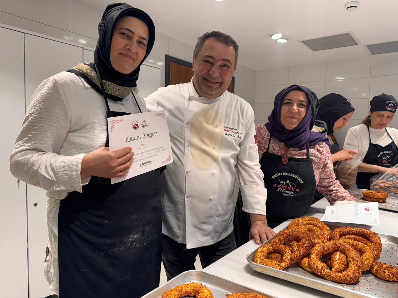 Ayrıca simidin düzgün şekillendirilmesinin pişirme sürecindeki etkisi ve fırınlama teknikleri katılımcılara detaylı şekilde gösteriliyor.