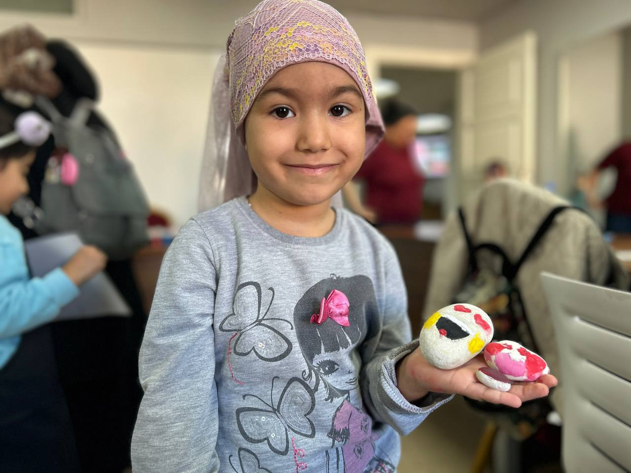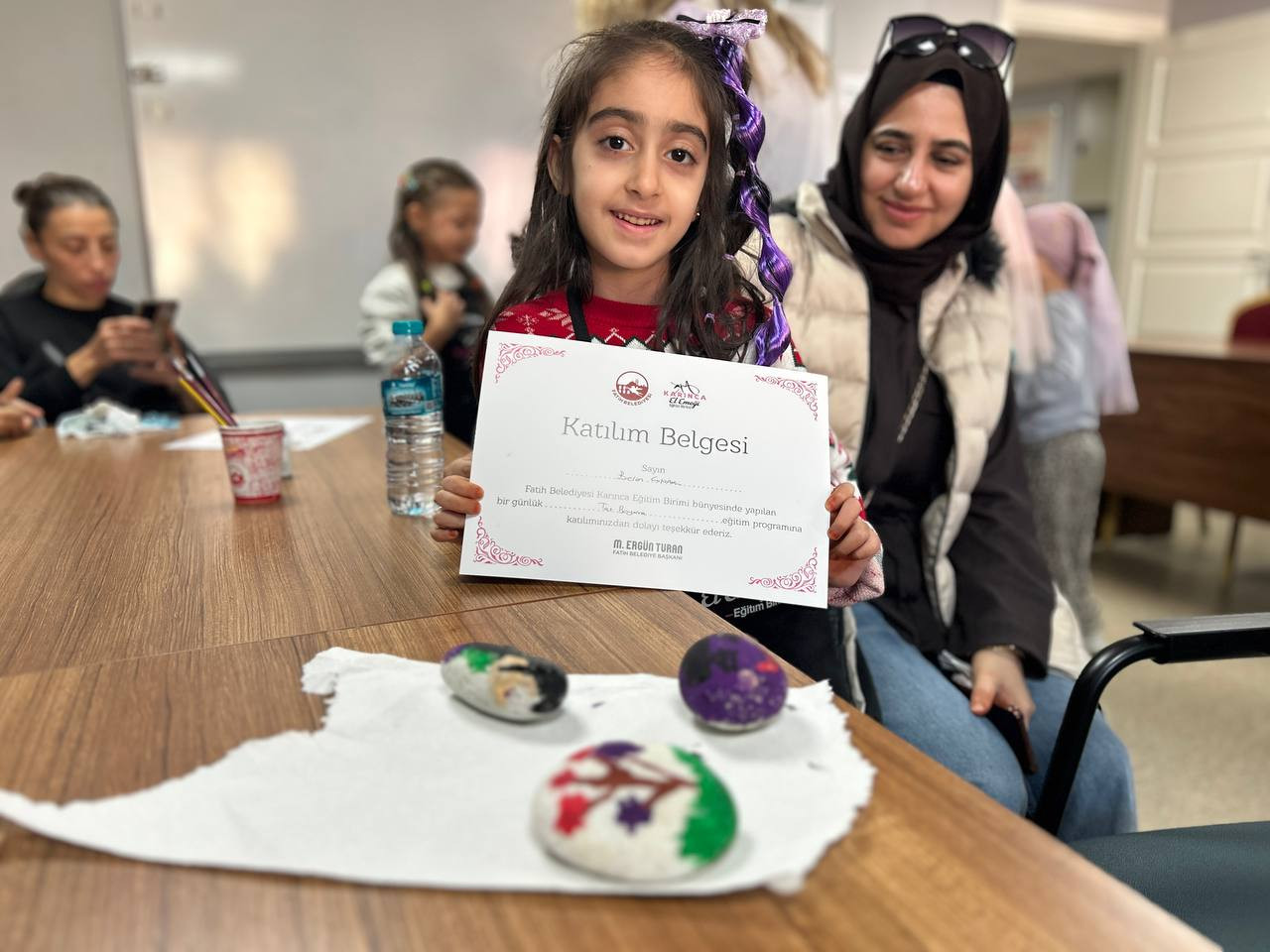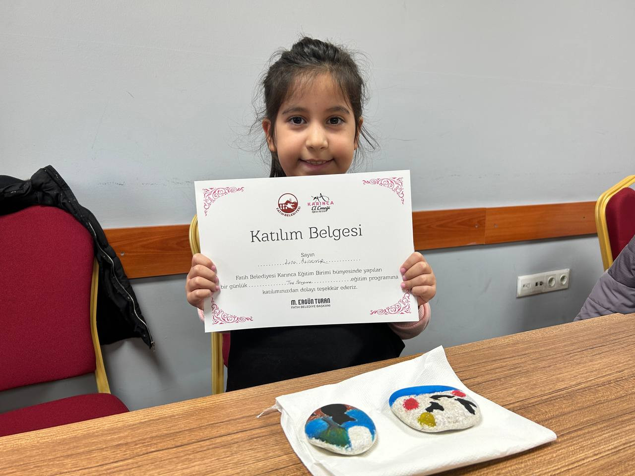 Etkinlik yalnızca çocukların gelişim sürecine katkı sağlamakla kalmayıp öğretmenleri için de anlamlı bir paylaşım fırsatı sundu. Program sonunda öğrenciler boyadıkları taşları ailelerine hediye ederken ortaya çıkan eserlerin her biri birer anı olarak saklandı.