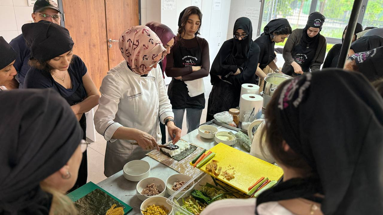 Japon mutfağı estetikle harmanlanmış bir gastronomi olarak dünya çapında büyük ilgi görüyor. Bu mutfağın en bilinen ve sembolik yemeklerinden biri olan sushi sağlıklı içeriği ve özenli hazırlık süreciyle dikkat çekiyor. KARINCA El Emeği Eğitim Birimi’nin organize ettiği bu atölyede sushi yapımının hem sanatsal hem de teknik yönleri katılımcılara sunularak keyifli bir eğitim ortamı oluşturuldu. Katılımcılar sushi pirincinin doğru pişirilmesinden sebzelerin hazırlanmasına ve deniz ürünlerinin seçimine kadar her aşamayı deneyimleme fırsatı yakaladı. Ayrıca sushinin Japon mutfağındaki köklü geçmişi ve bir yemek olmanın ötesinde bir sanat ve kültürel ifade biçimi olduğu aktarıldı.