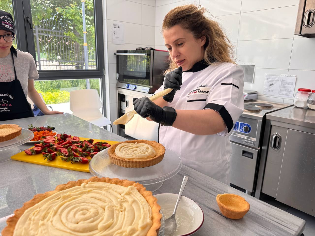 Meyveli tart yapımının bir diğer aşaması olan krema hazırlama ve sıkma teknikleri atölyenin en dikkat çekici bölümlerinden biri. Katılımcılar tatlıya lezzet katacak krema tariflerini öğrenirken kremanın kıvamı ve tartın üzerine nasıl düzgün sıkılacağı konusunda detaylı bilgiler ediniyor. Doğru tekniklerle yapılan krema süslemeleri tartın sunumunda fark yaratıyor.