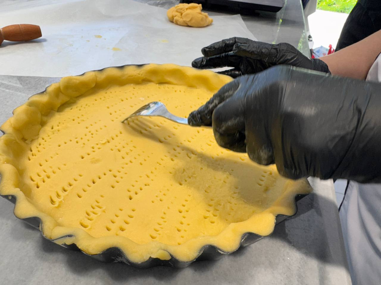 Atölyenin ilk bölümünde tart hamurunun nasıl hazırlanacağı detaylı bir şekilde ele alınıyor. Hamur yapımında kullanılan malzemelerin oranları, hamurun kıvamının doğru şekilde ayarlanması, yoğurma teknikleri ve hamurun dinlendirilmesi gibi kritik adımlar üzerinde duruluyor. Eğitmenler hamurun doğru kıvama gelmesi için gereken püf noktalarını katılımcılarla paylaşıyor ve hamurun kalıba yerleştirilmesi aşamasında dikkat edilmesi gerekenleri uygulamalı olarak gösteriyor. Tart hamurunun kalıpta düzgün bir şekilde yer alması pişerken formunu koruması açısından büyük önem taşıyor.