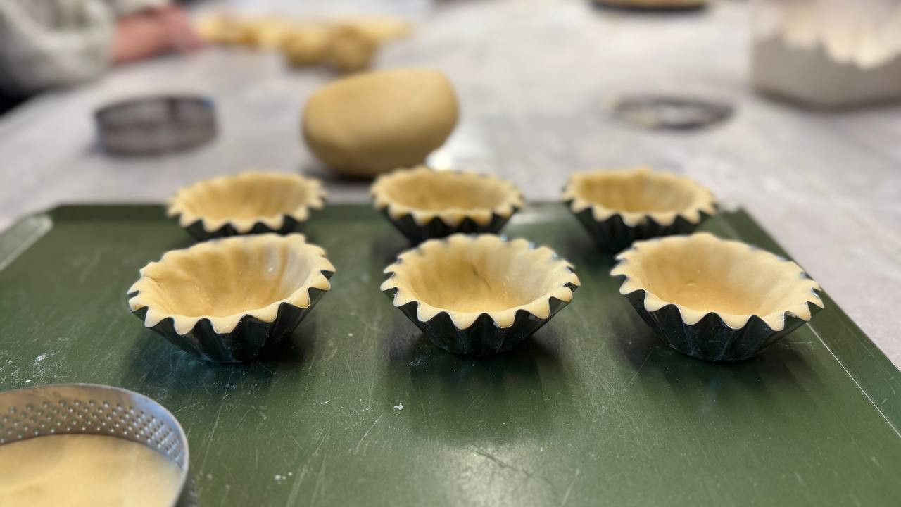 Atölyenin ilk bölümünde tart hamurunun nasıl hazırlanacağı detaylı bir şekilde ele alınıyor. Hamur yapımında kullanılan malzemelerin oranları, hamurun kıvamının doğru şekilde ayarlanması, yoğurma teknikleri ve hamurun dinlendirilmesi gibi kritik adımlar üzerinde duruluyor. Eğitmenler hamurun doğru kıvama gelmesi için gereken püf noktalarını katılımcılarla paylaşıyor ve hamurun kalıba yerleştirilmesi aşamasında dikkat edilmesi gerekenleri uygulamalı olarak gösteriyor. Tart hamurunun kalıpta düzgün bir şekilde yer alması pişerken formunu koruması açısından büyük önem taşıyor.
