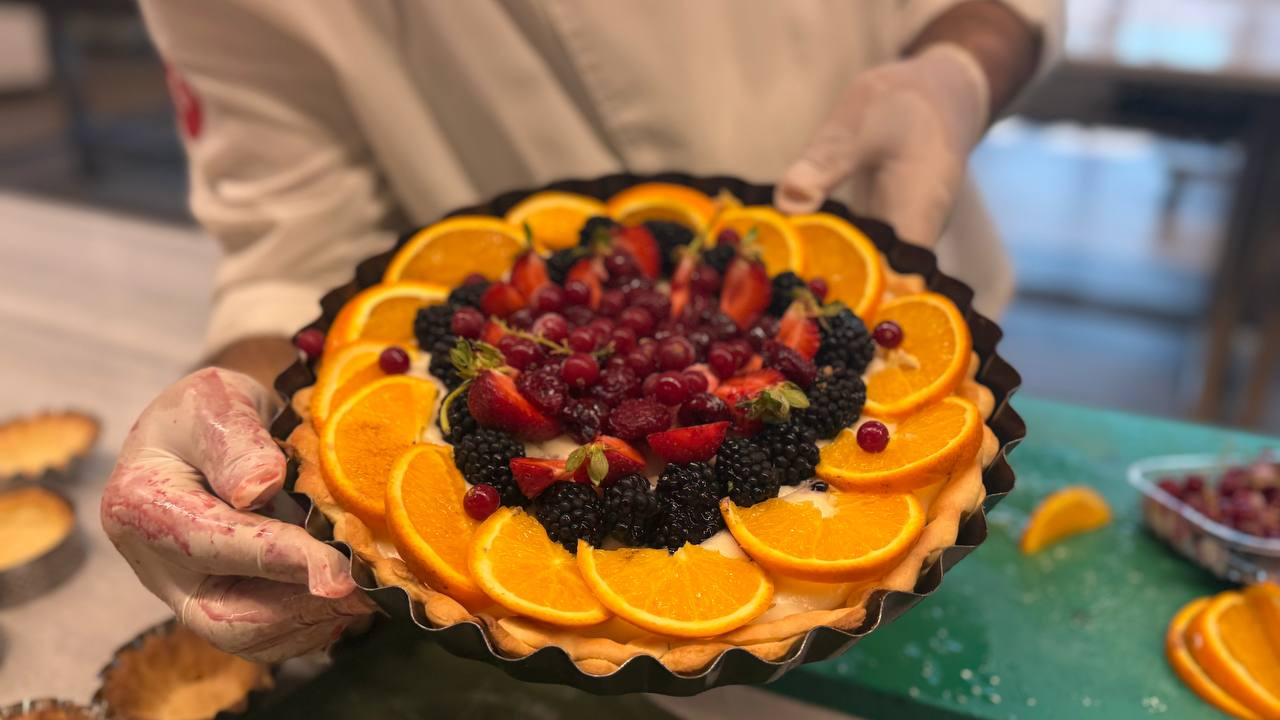 Atölyenin en renkli bölümü ise taze meyvelerle yapılan süsleme aşaması. Katılımcılar mevsimin en taze meyvelerini kullanarak tartlarını süslüyor. Meyvelerin renk uyumu ve estetik bir şekilde tartın üzerine yerleştirilmesi üzerine pratik bilgiler paylaşan eğitmenler katılımcılara her aşamada destek oluyor.