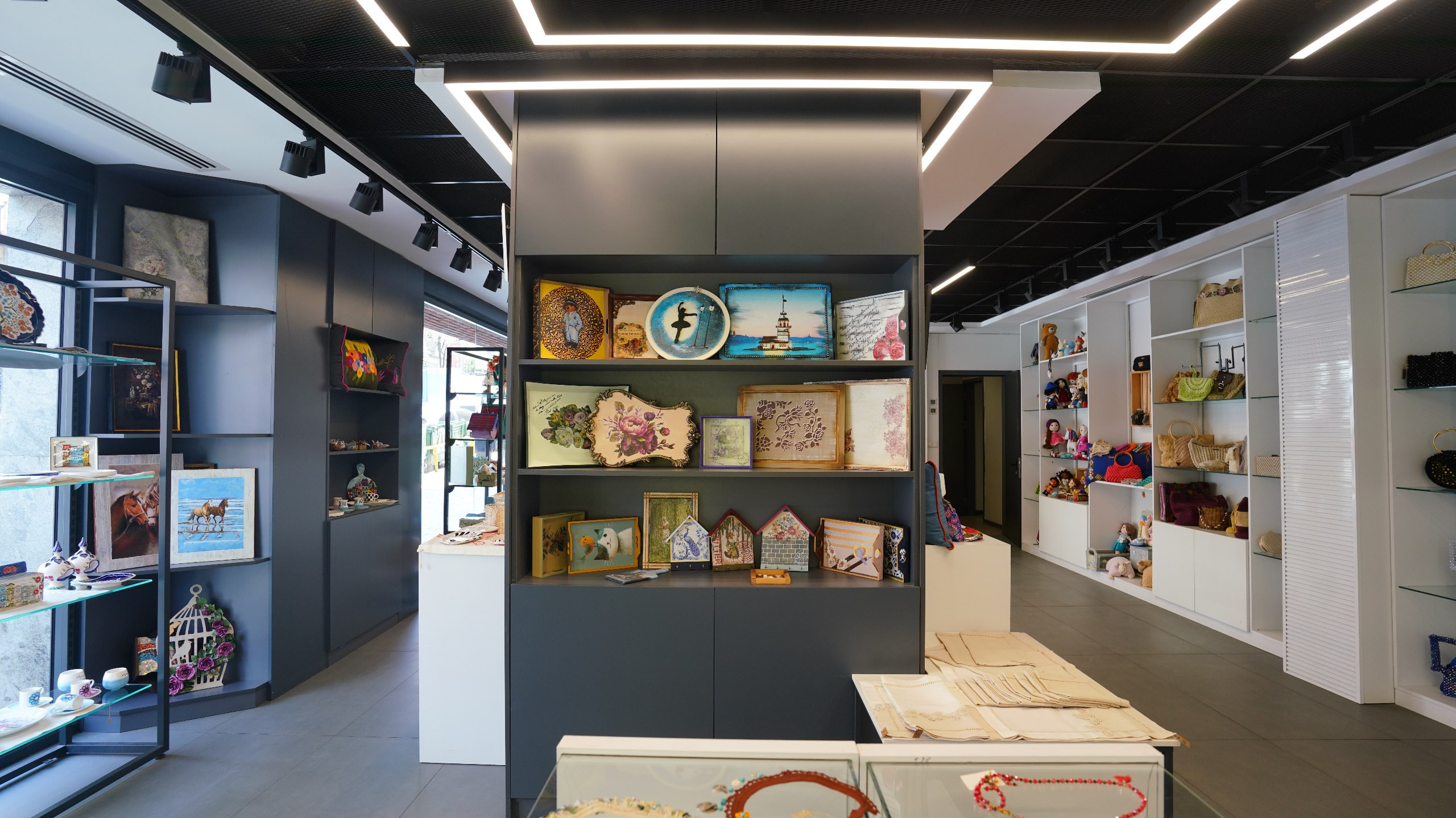 Haliç’teki mağaza, kursiyerlerin el emeğiyle ürettiği sanatsal çalışmalara ev sahipliği yapıyor. Burada satılan ürünlerden elde edilen gelir doğrudan kursiyerlere bırakılarak onların hem maddi kazanç sağlamasına hem de sanatsal üretimlerini sürdürmesine katkı sağlanıyor.