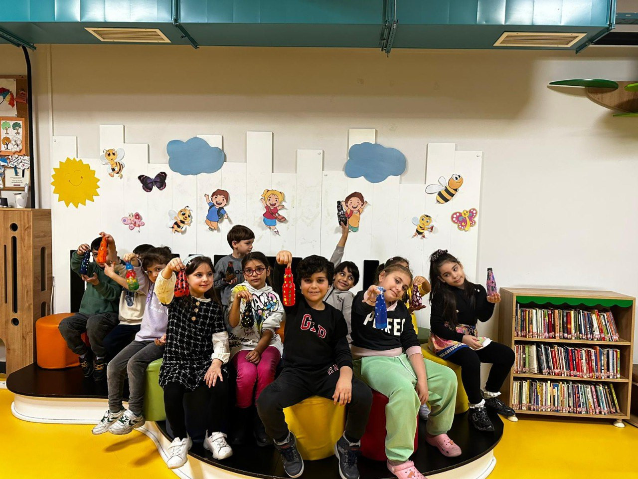 Kariye Çocuk Kütüphanesi’nin atölye alanında öğrencilerimiz, şişeleri yeniden değerlendirerek dönüşüm odaklı bir çalışma gerçekleştirdi.