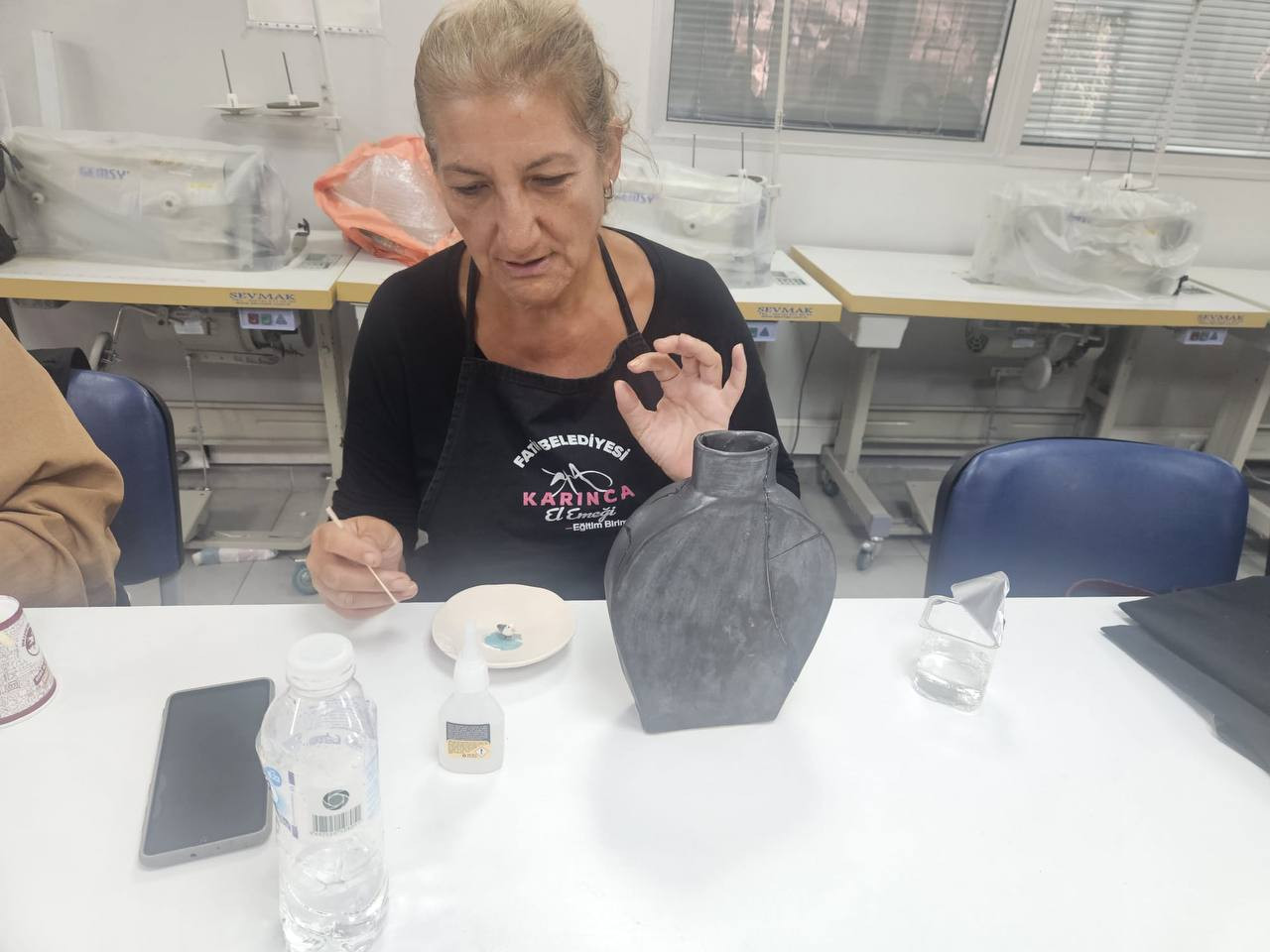 Etkinliğe katılanlar yeni bir beceri kazanmanın ve sosyal bir ortamda vakit geçirmenin mutluluğunu yaşıyorlar. KARINCA El Emeği Eğitim Birimi benzer etkinliklerle sanatseverleri bir araya getirmeye ve onların yeteneklerini geliştirmeye devam ediyor.
