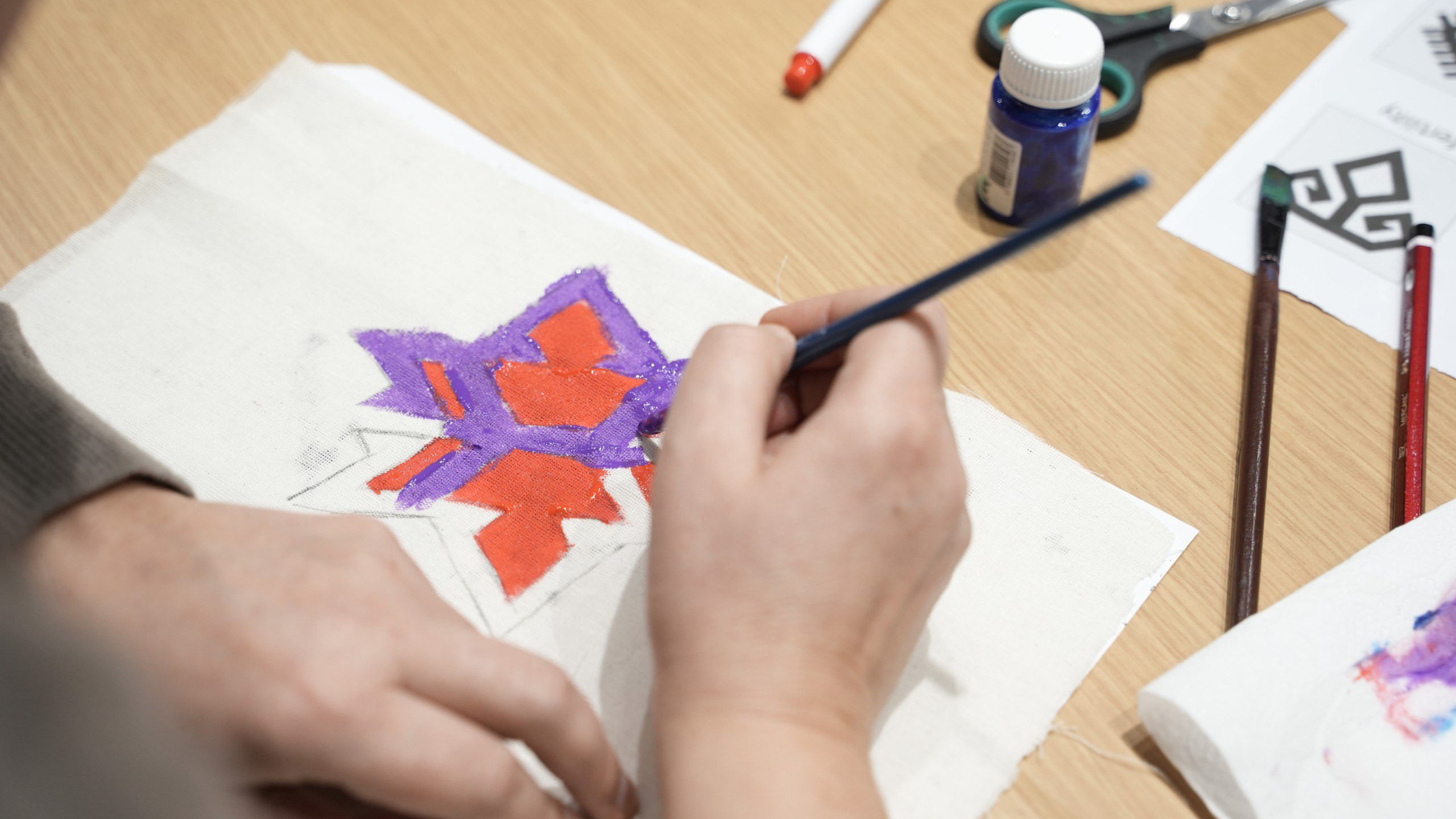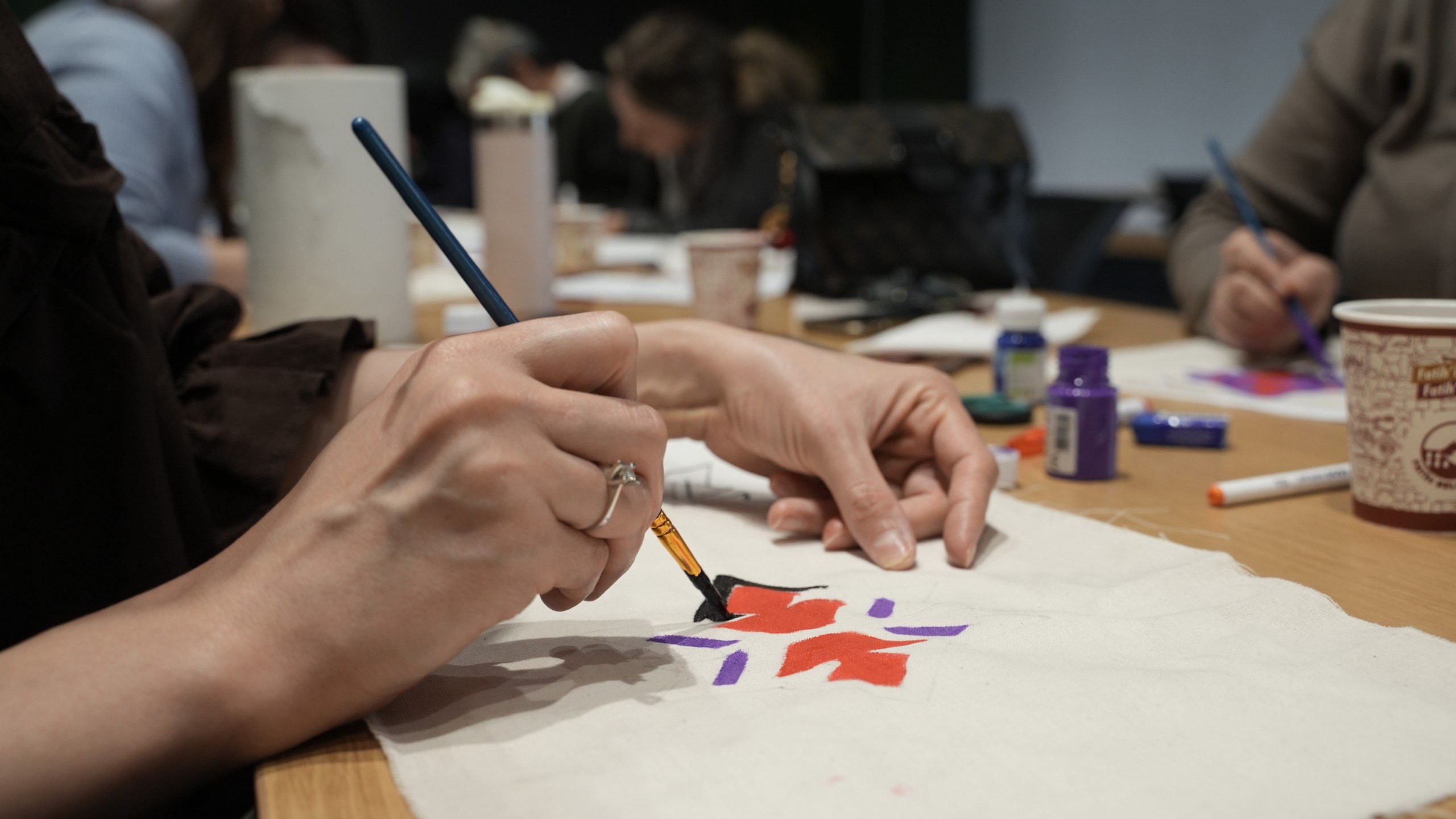 Çalışmalar desenlerin kağıt üzerinde çizimle tasarlanmasıyla başladı. Katılımcılar motiflerin anlam dünyasını keşfettikten sonra onları kişisel üsluplarıyla zenginleştirdi. Eğitmen rehberliğinde ilerleyen süreçte motifler kumaş boyalarıyla ham kumaş yüzeylerine aktarıldı. Böylece desenler yalnızca çizim olmaktan çıkıp renk ve dokuyla birleşerek özgün bir tasarıma dönüştü.