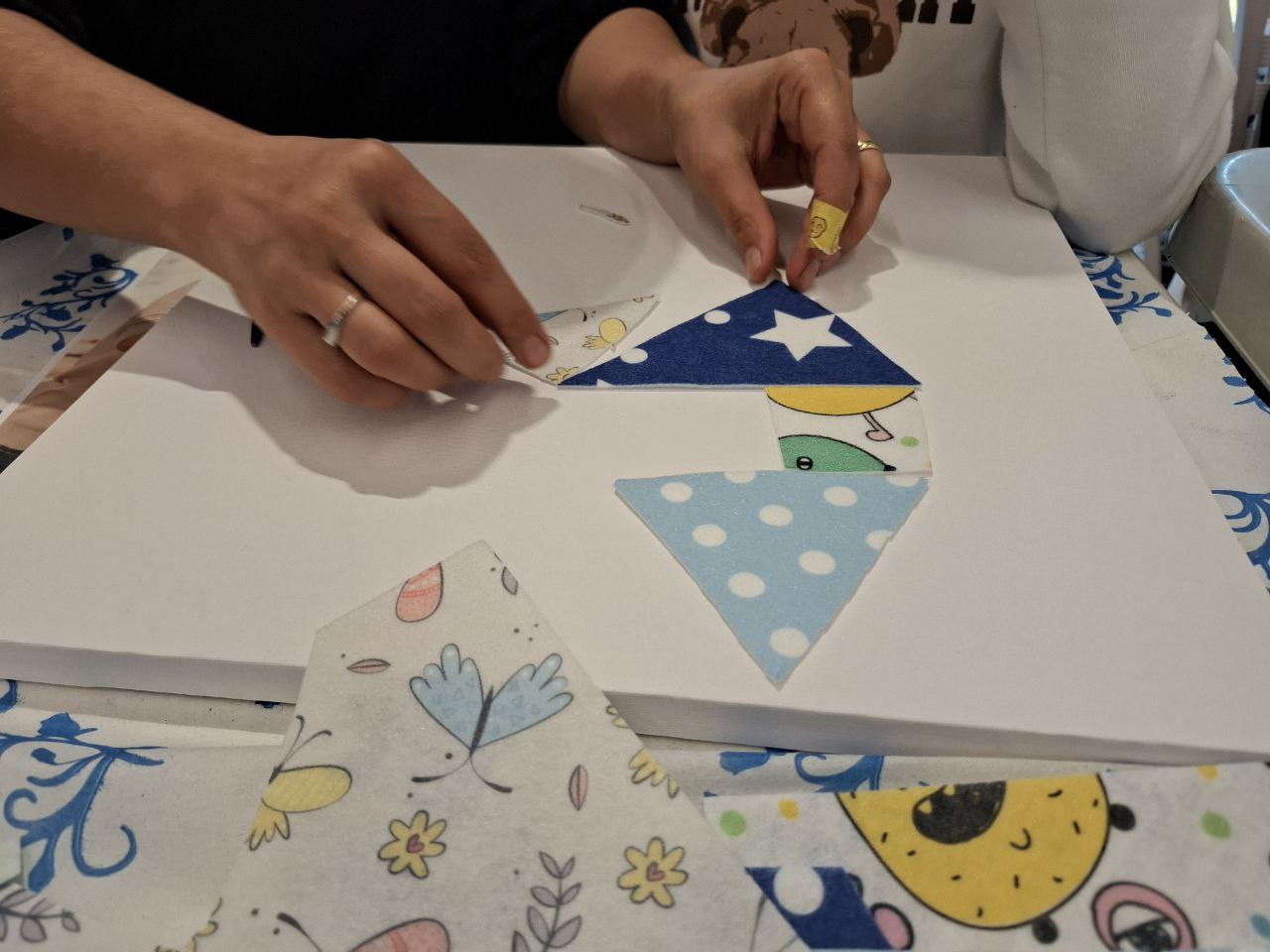 Atölyenin ikinci aşaması kübizmin temel ilkelerini uygulamalı olarak deneyimlemeye ayrıldı. Geometrik form parçalarının bir bütün oluşturacak şekilde düzenlenmesi, çoklu perspektif kavramının resim yüzeyine nasıl yansıtıldığı, bir figürün eşzamanlı olarak farklı açılardan betimlenmesine olanak sağlayan yapının nasıl kurulduğu gibi konular adım adım ele alındı. Rehberlerin yönlendirmesiyle çalışan katılımcılar soyutlama prensibini tanıyarak görsel algılarını yeniden şekillendirdi ve kübist yaklaşımın temel mantığını kendi üretimleri üzerinden deneyimledi.
